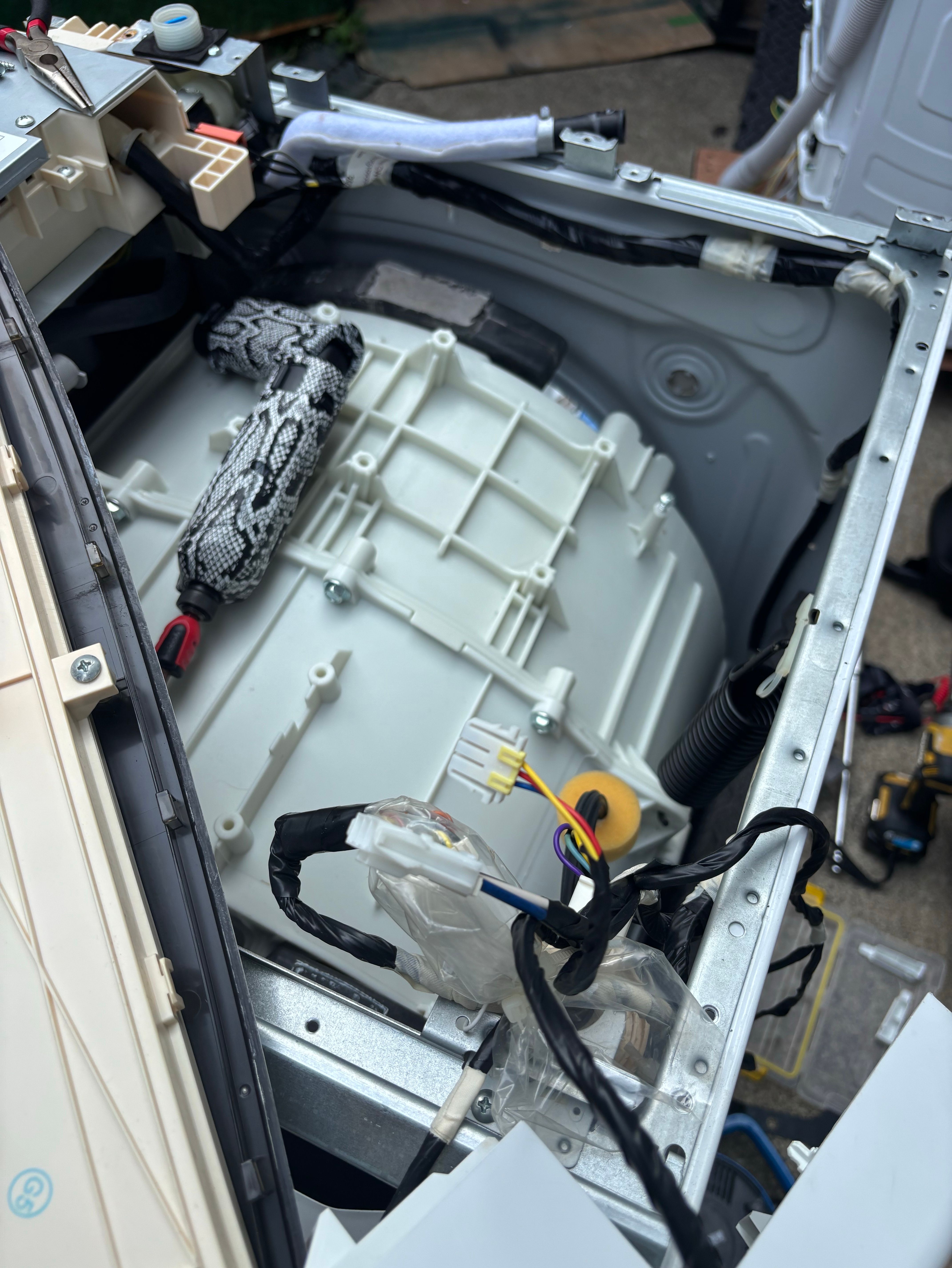 ドアパッキンのワイヤーが輪になった状態で一体化しており、外したら戻せない作りをしているので、やはりドラムの分解クリーニングは難しそうですね💦