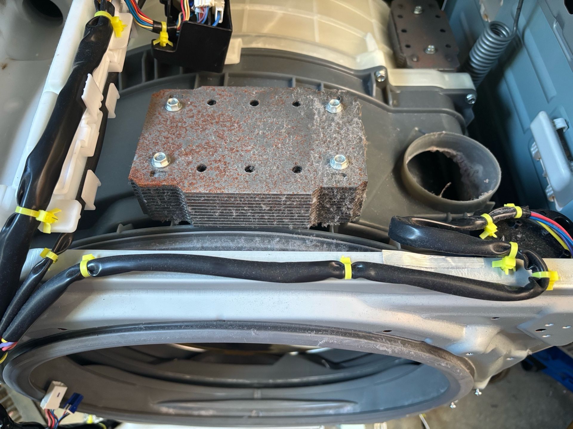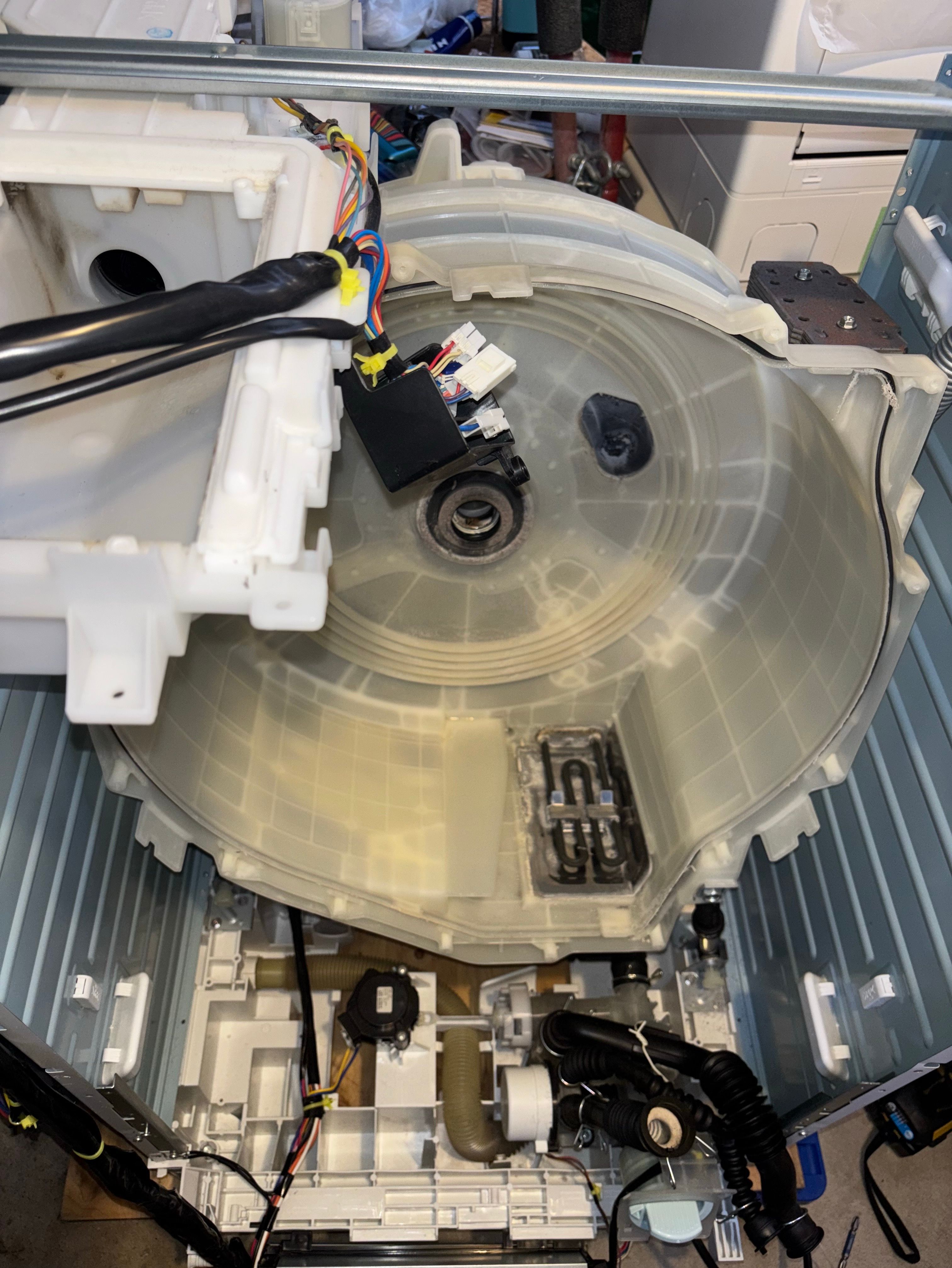 今日のところはヒーターユニットを降ろしてドラムと脱水受けカバーを洗浄して終了!