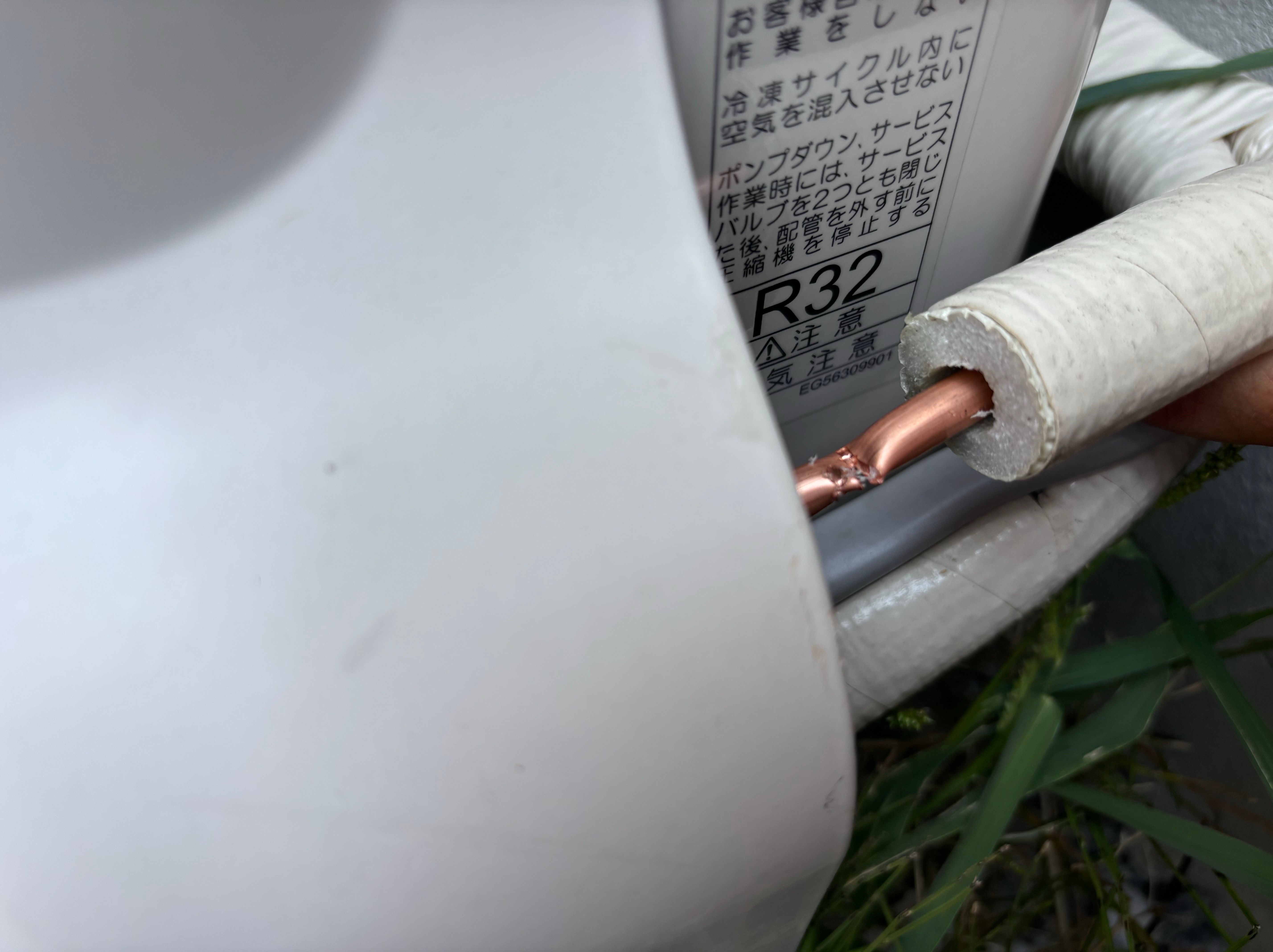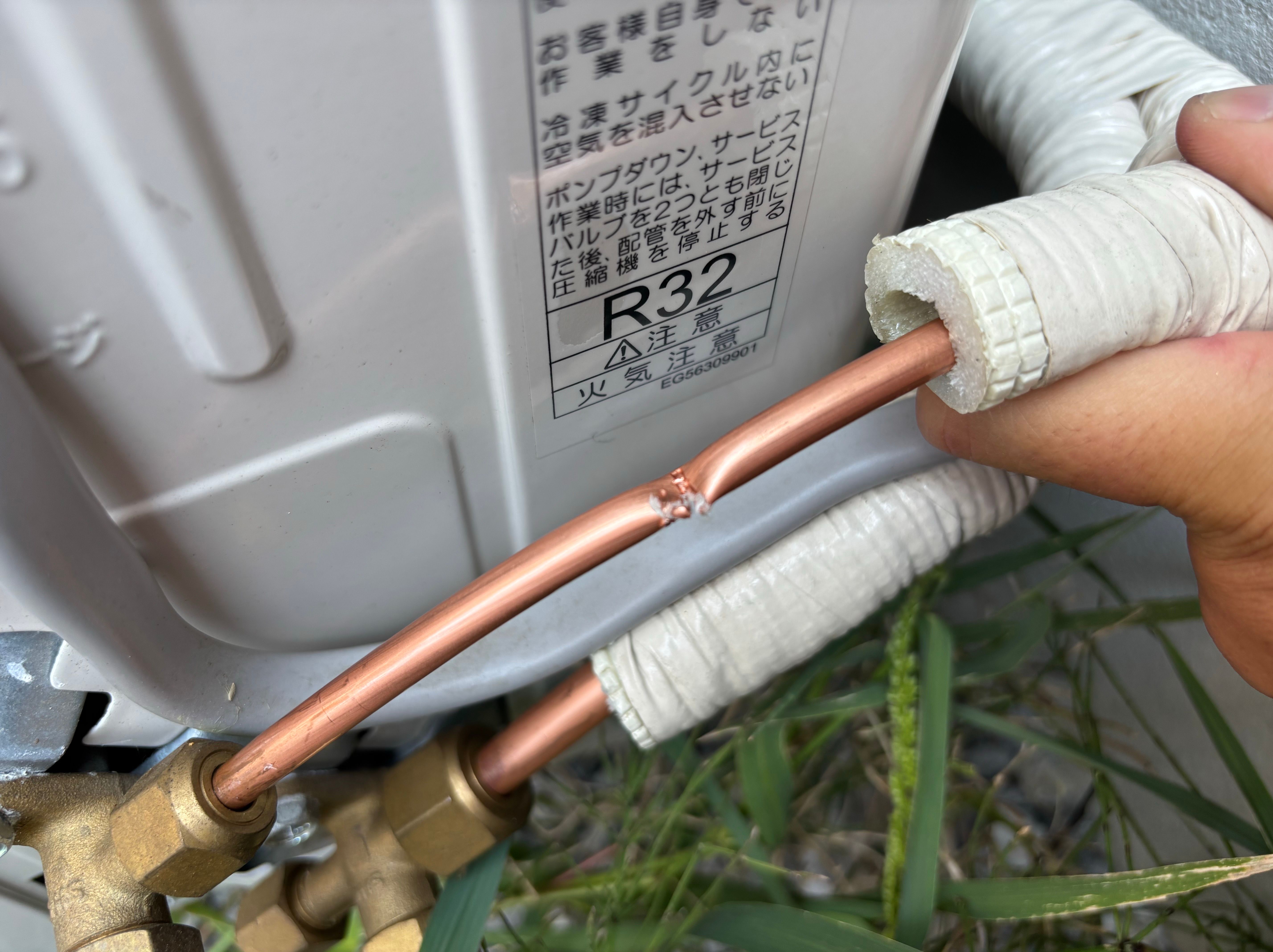 状況としては「設置約2年」「メーカー違いの3台」「同じ日から急に冷えなくなった」という内容でしたが、訪問したところ全ての室外機に配管をカットしようとした跡があり、そこからガス漏れしていました💦