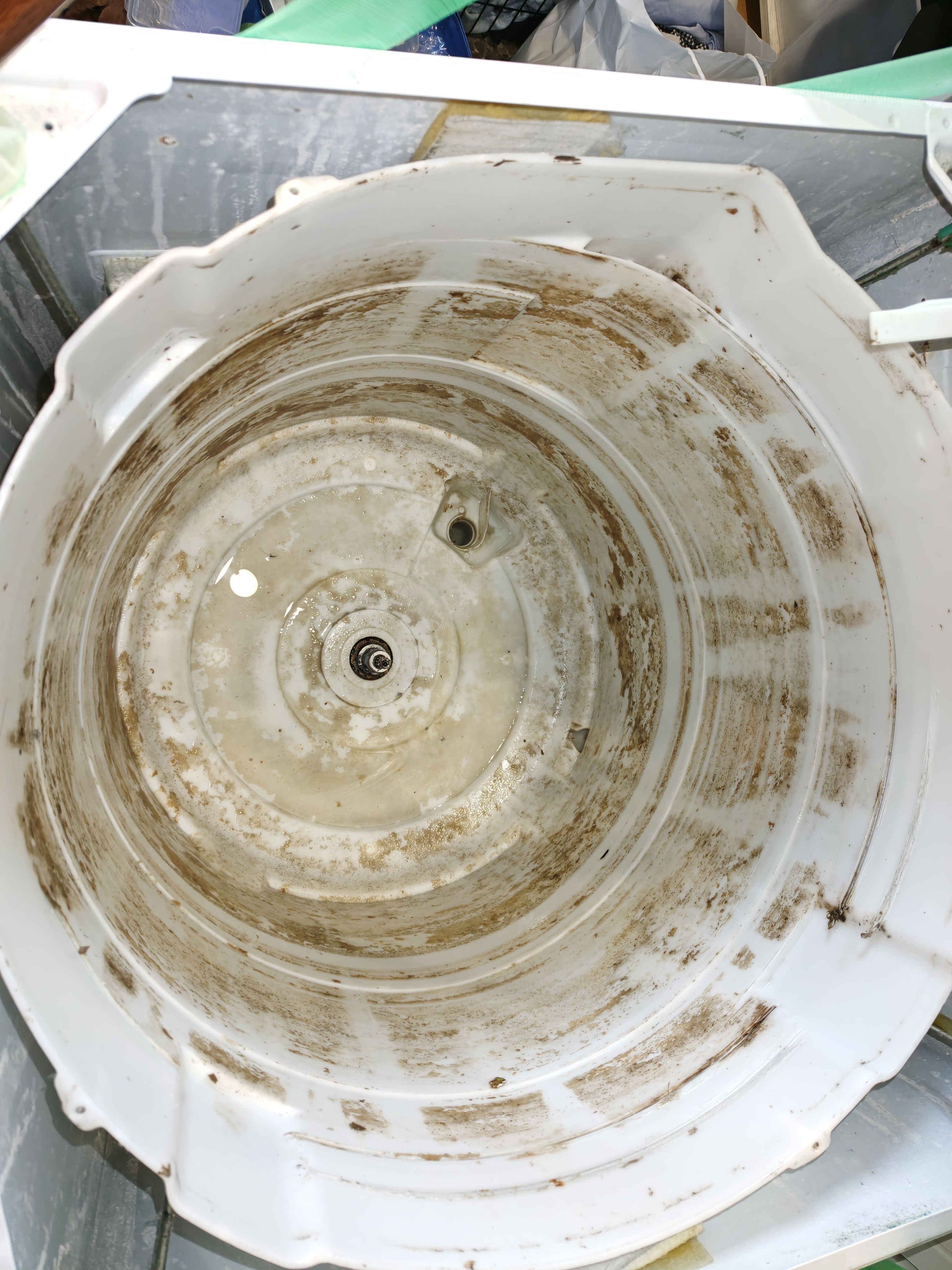 カビが時々洗濯物についてくるとのことでした。洗剤や柔軟剤の溶け残りが洗濯槽に付着、それがカビているのが原因でした。