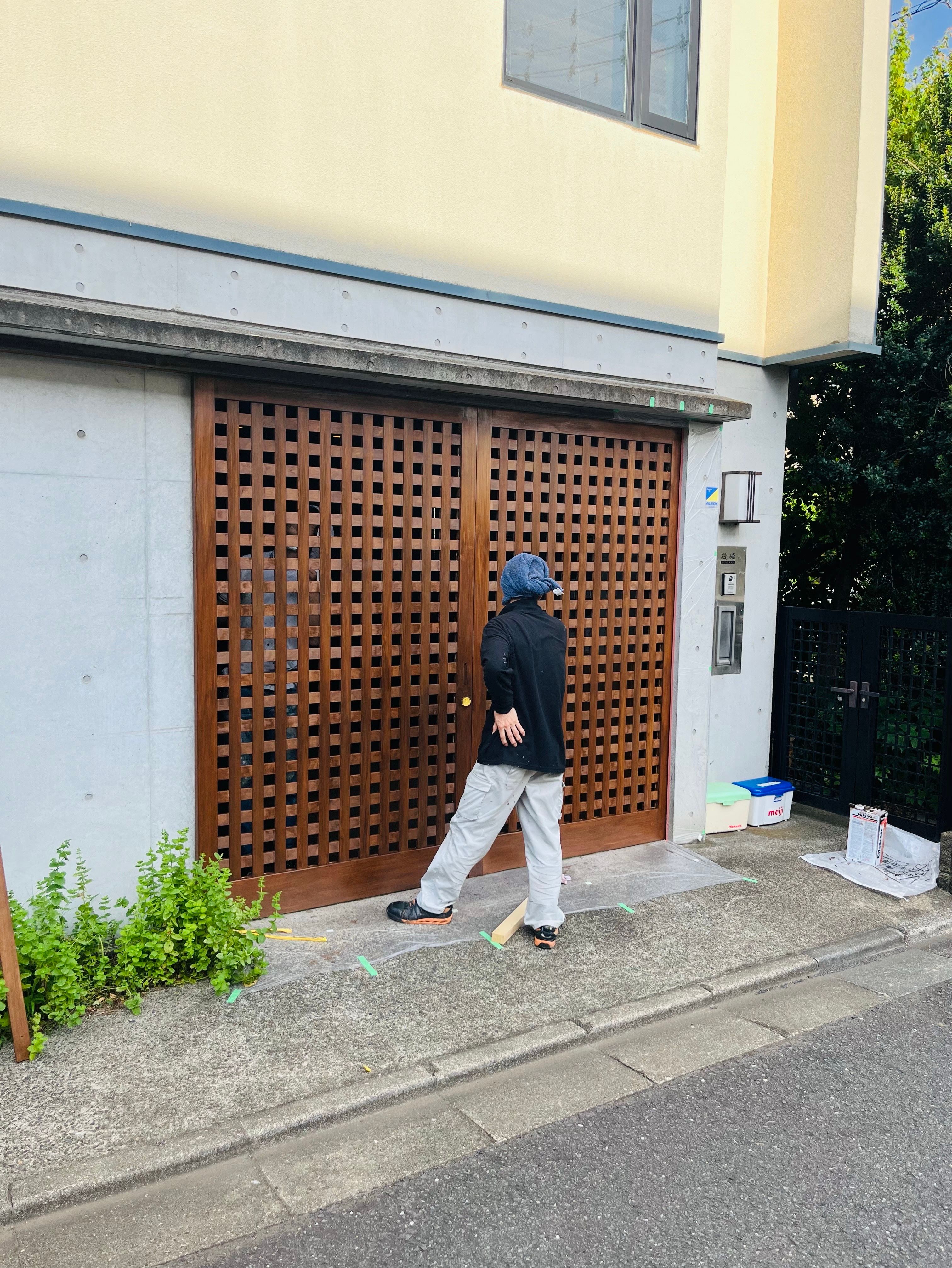 杉並区で製作したガレージ扉の塗装を行いました。