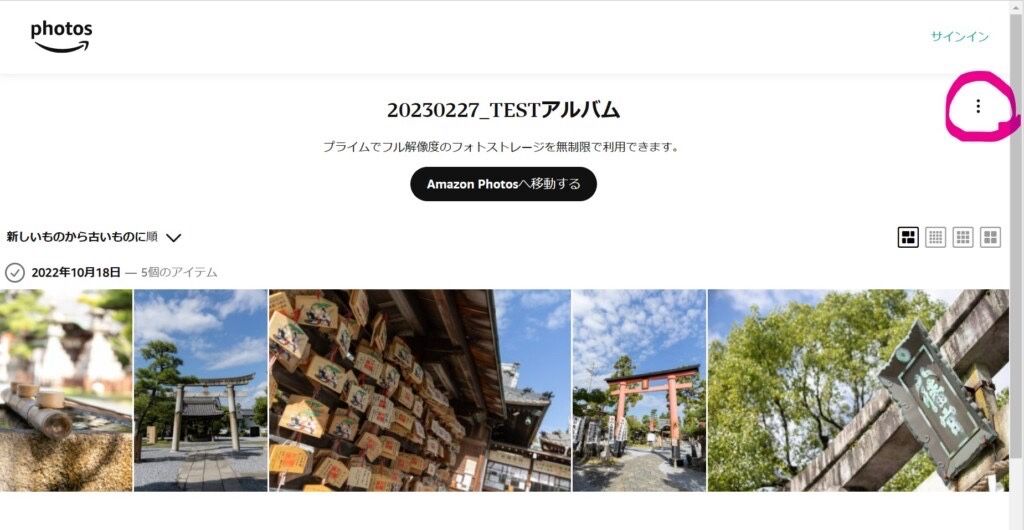 ご案内のURLをクリックすると、次のような画面に切り替わります。右上にある「・」が3つ並んだボタンをクリックします。