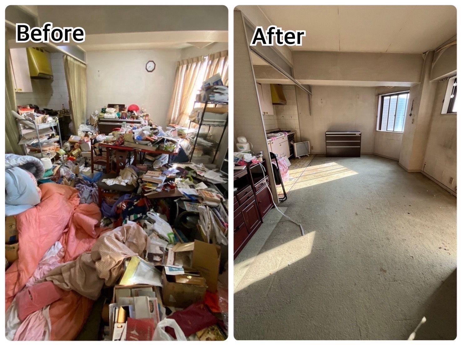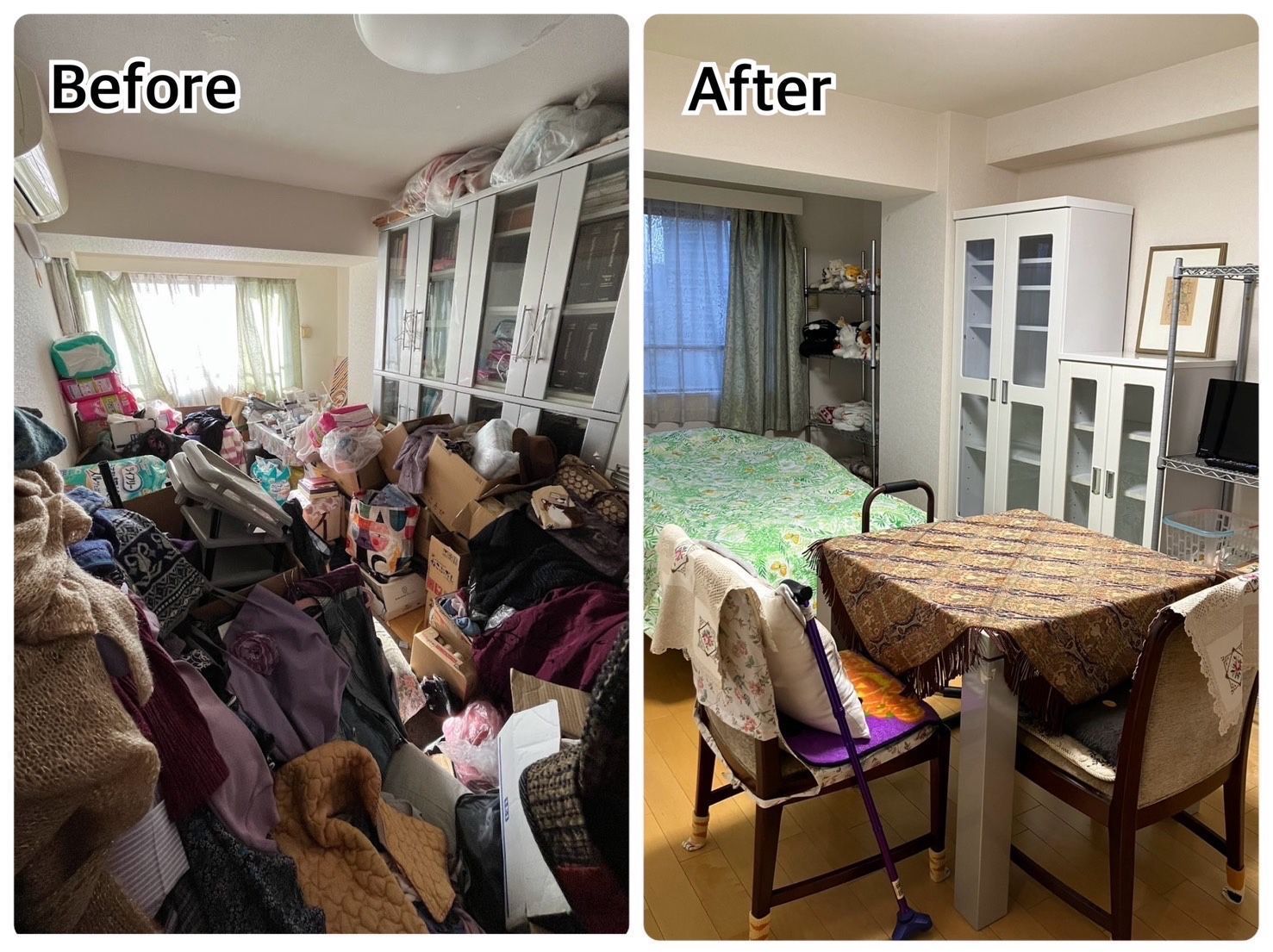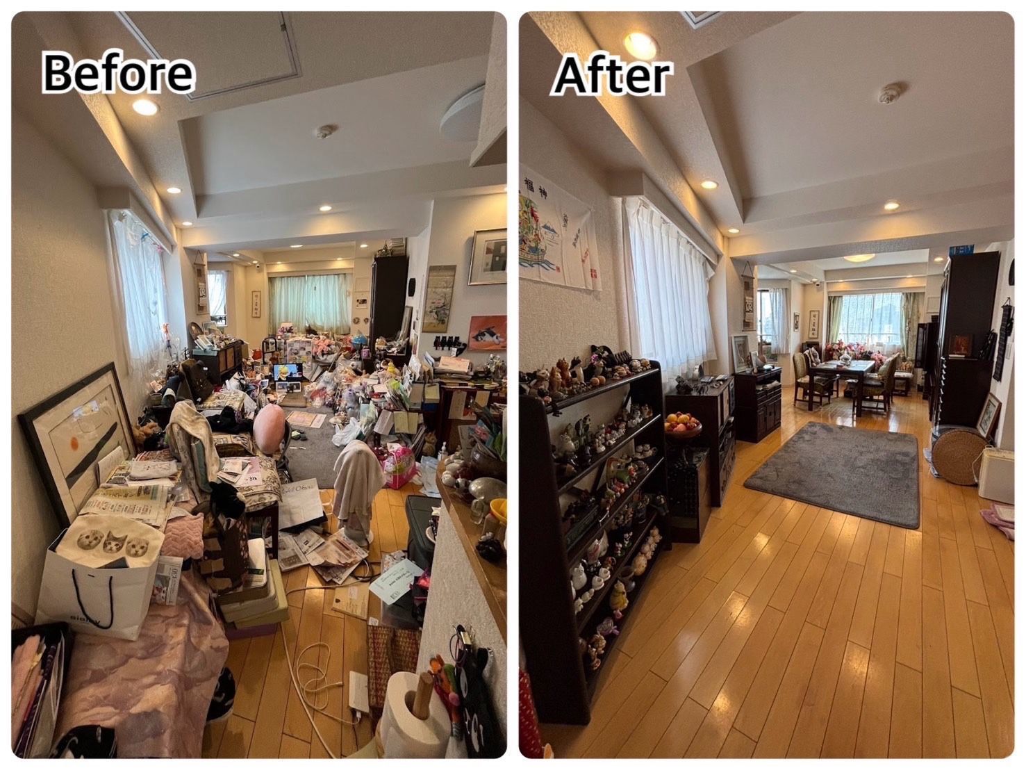 Beforeの写真のようにものが溢れていた空間が、Afterではすっきりと明るい住まいに生まれ変わりました。