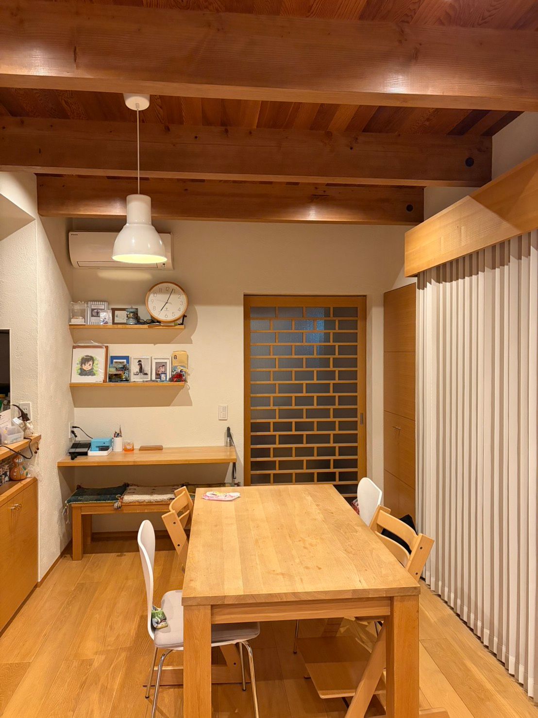 「子どもが自分でお片付けをして、クローゼットの前のテーブルで勉強もしています😊」