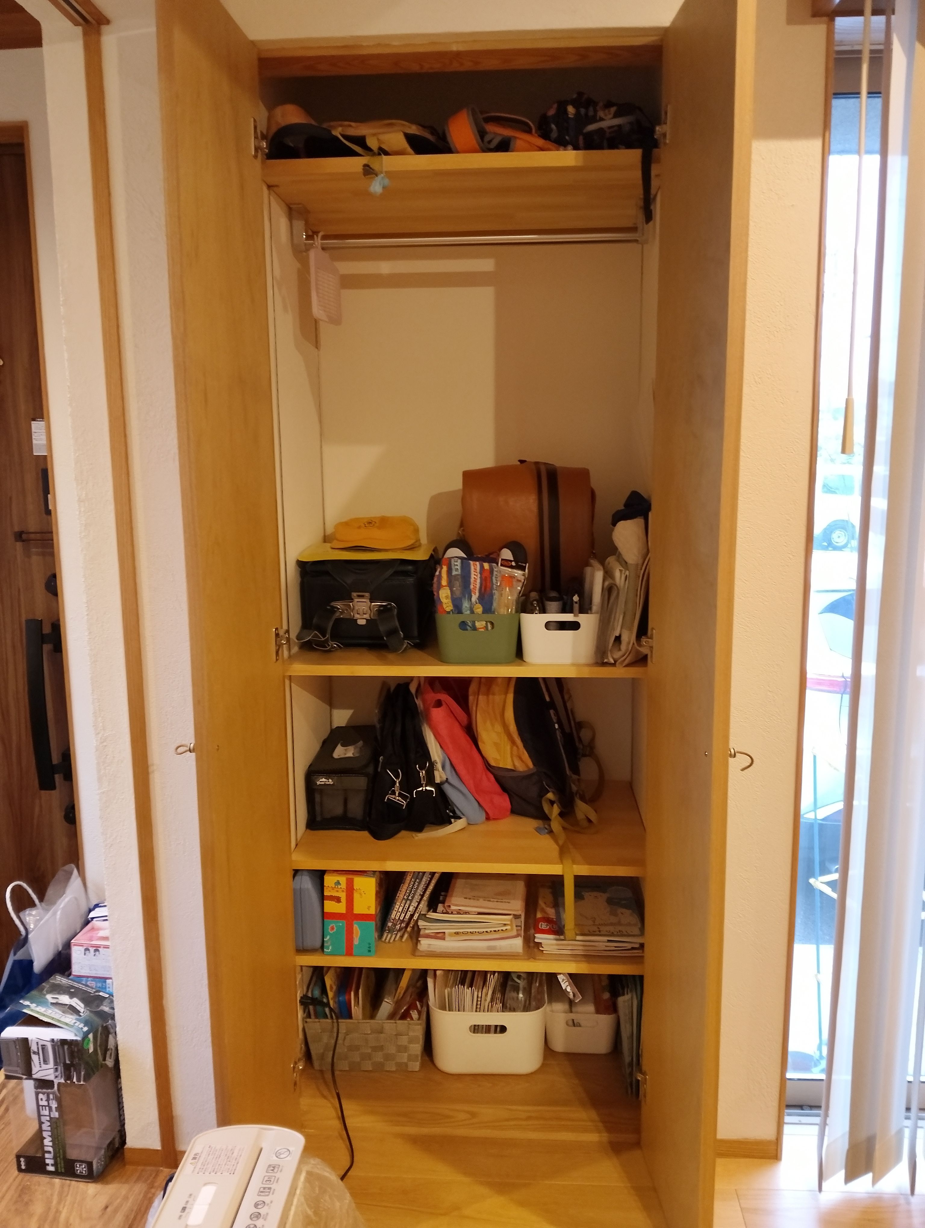 「ここに子どもの制服・カバン・学校の道具を入れましょう!」