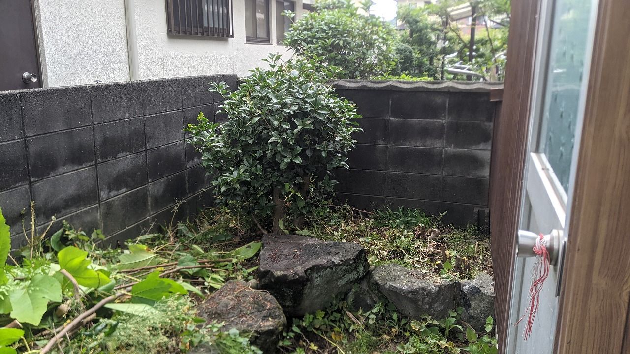 柿の木とビワとヒイラギの木以外を伐採しました。