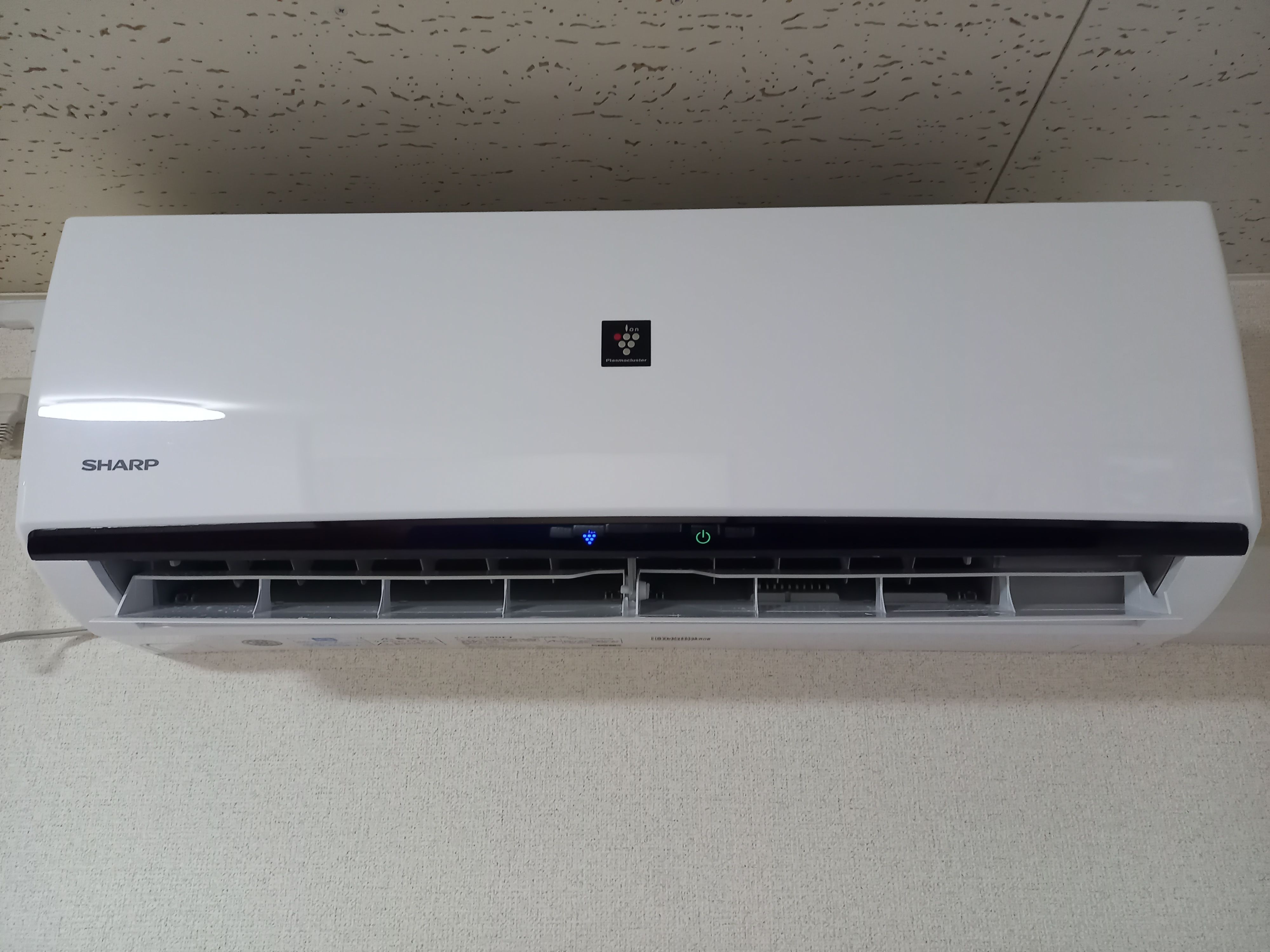 シャープ社製ノーマルタイプエアコンのクリーニング施工現場。