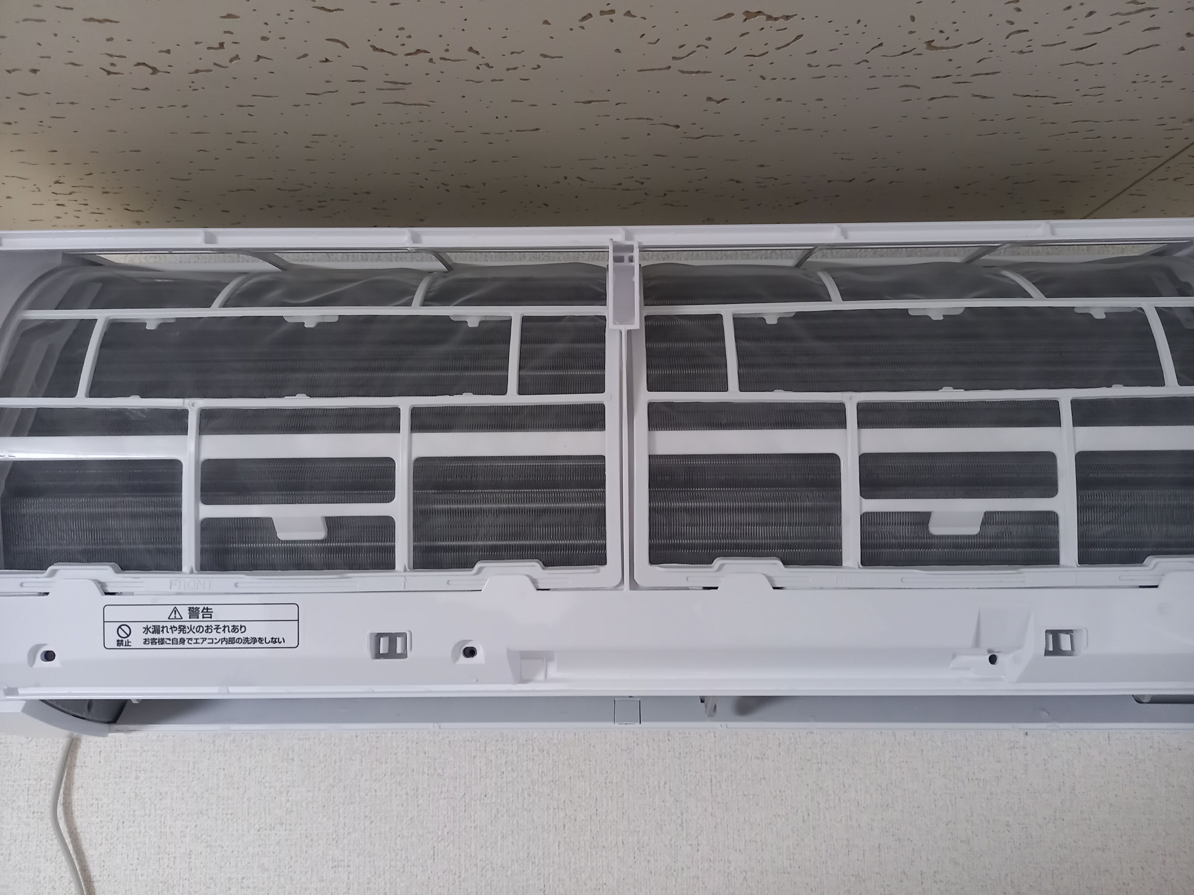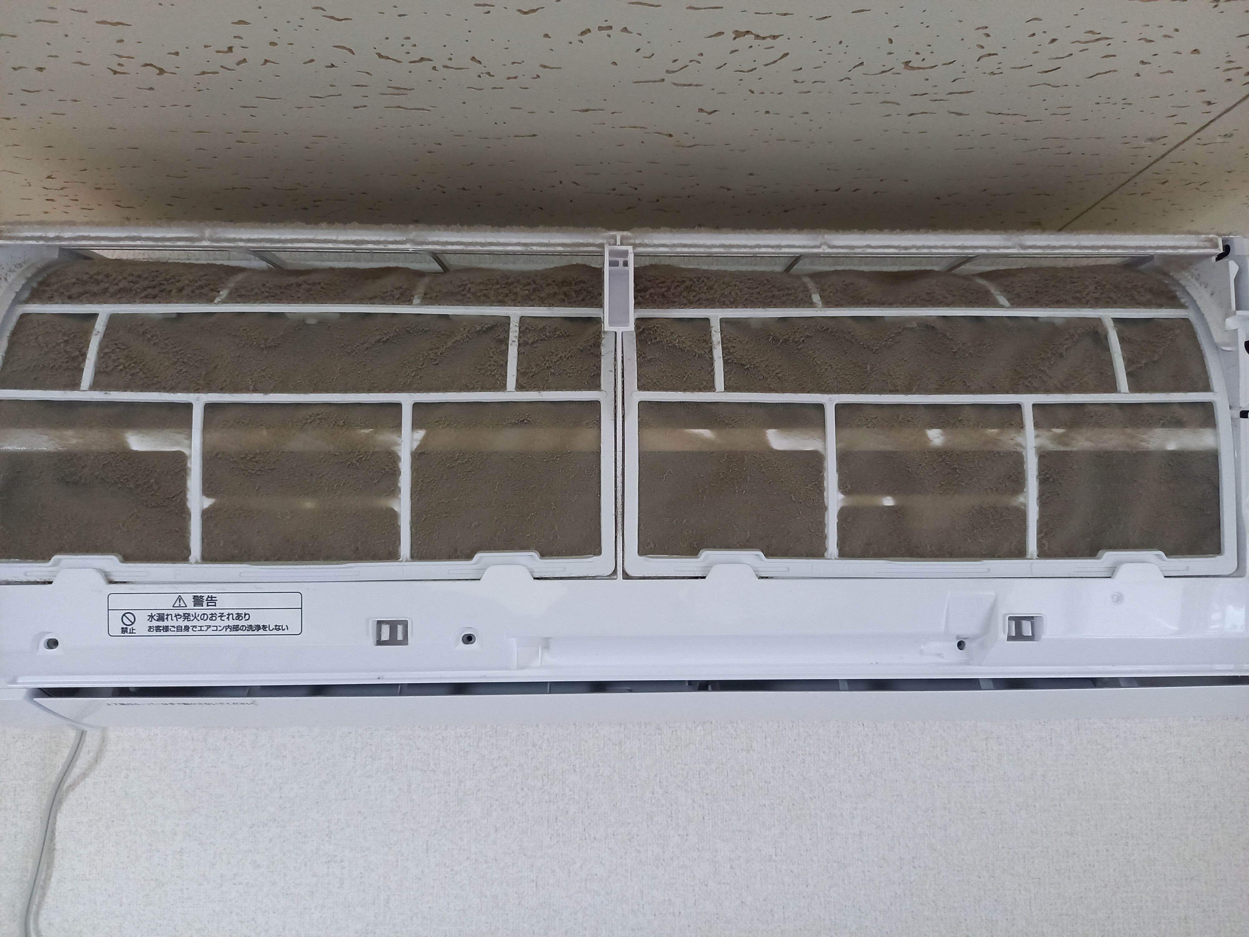退去された後にクリーニングに入りましたが表カバーを外すと埃と塵がたまったフィルターが見えてきました。
