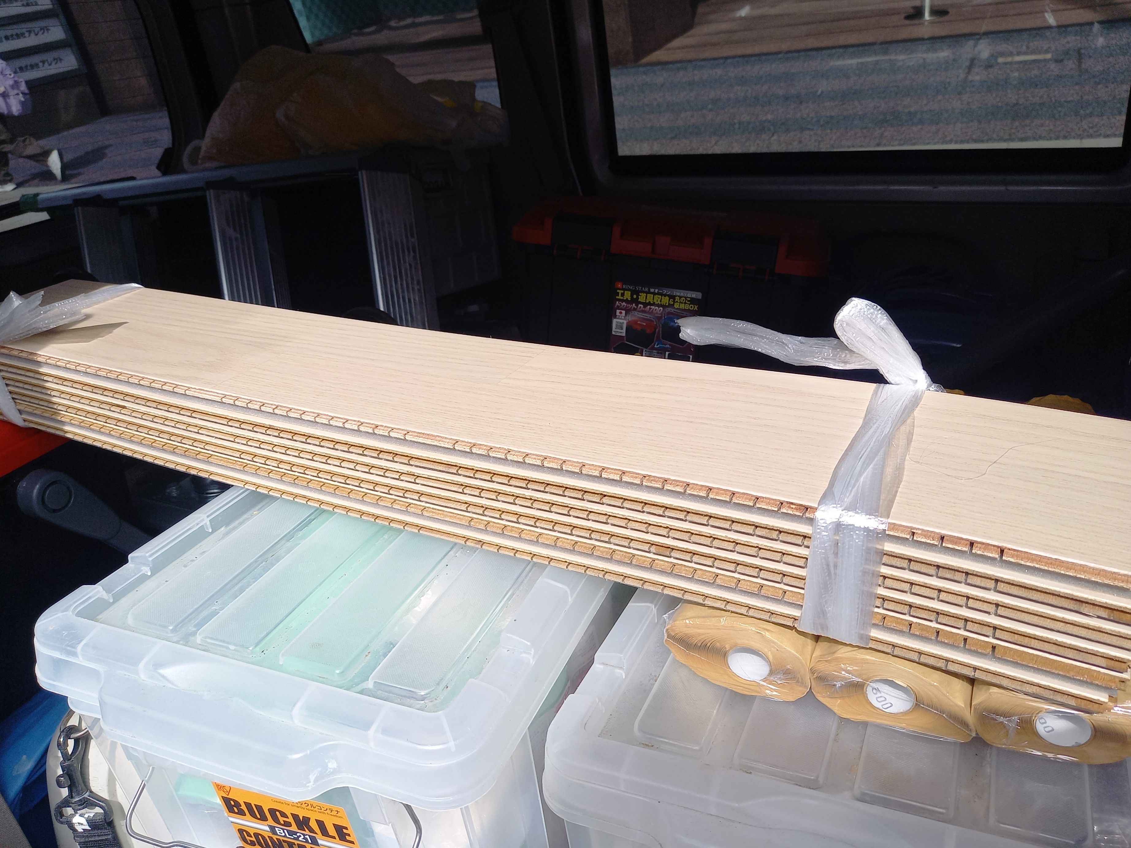 板を預り倉庫で施工しました。