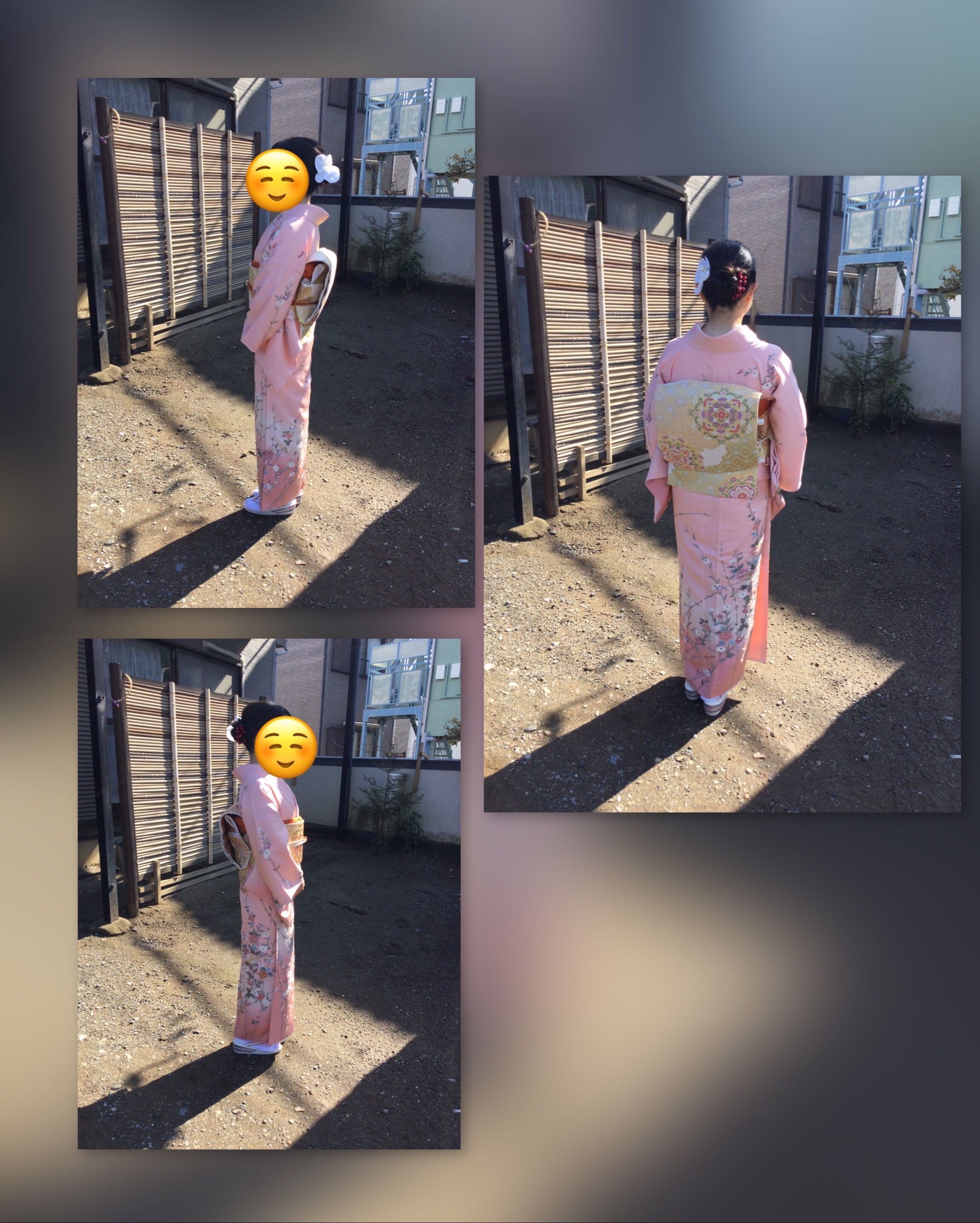 お客様初節句のお祝いに訪問着着付けご依頼頂きました。前日雪が降ったのが嘘のように快晴☀️でした。冷たい風をも春の到来を感じるようでした。ピンクの着物がお顔写りを華やかにしていました。ご用命ありがとうございました。