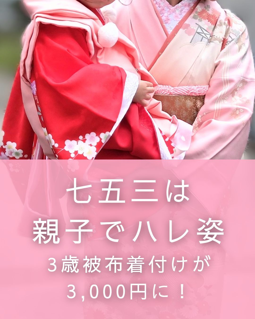 七五三は親子でハレ姿に!3歳被布着付けが3,000円に!