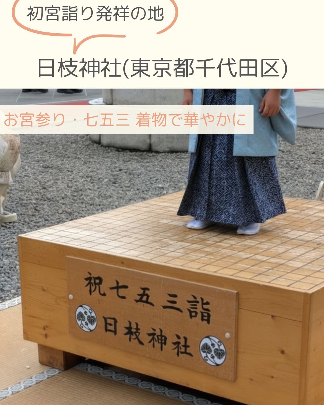 七五三着付け・お宮参り着付け・初宮参り(初宮詣)着付けなどは、当店きもの しいなの出張着付け(訪問着付け)と日枝神社へのアテンドサービスが対応可能です。