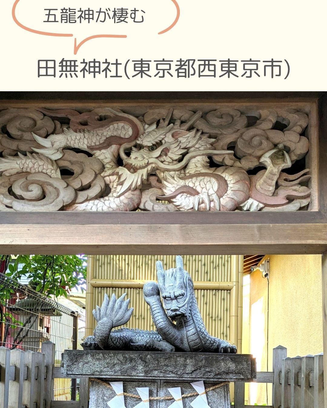 田無神社は江戸時代創建で、風雨を司る級長津彦命・級長戸辺命を主祭神とします。かつて水利に乏しい地域で雨や水を祈願する龍神信仰と結びつき、現在の五龍神信仰へと発展しました。