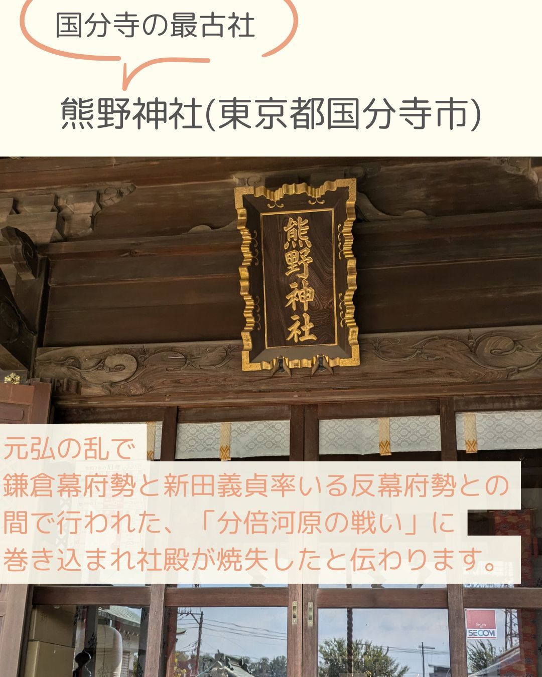 熊野神社は恋ヶ窪の郷に690年以上鎮座すると伝わる、国分寺市内で最も古い神社です。境内には聖護院道興准后の歌碑や宝雪庵可尊建立の芭蕉句碑があり、地域に親しまれています。