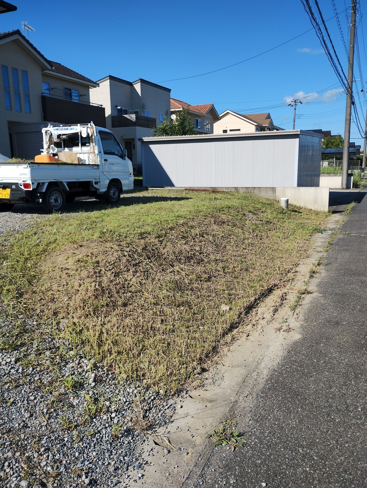 お客様のご要望で、除草剤は使わないで、石飛びに気を付けてとの事でした