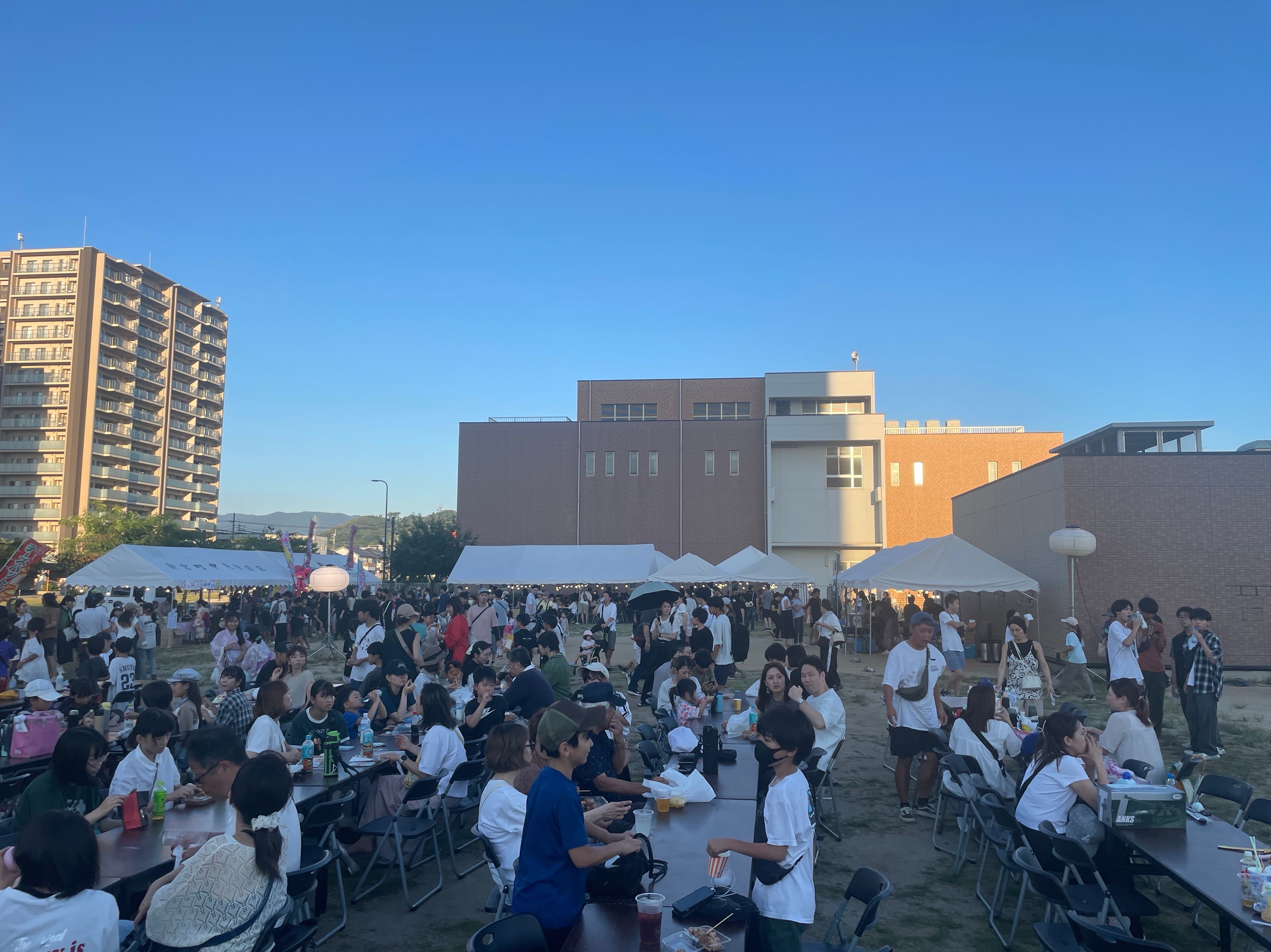 今年の夏祭りは、IKEA前の広場で開催されました。白いテントがずらりと並び、地元の飲食店や団体が出店する屋台はどこも大盛況。焼きそばやかき氷、唐揚げなどの香りが漂い、思わず足を止めてしまいます。