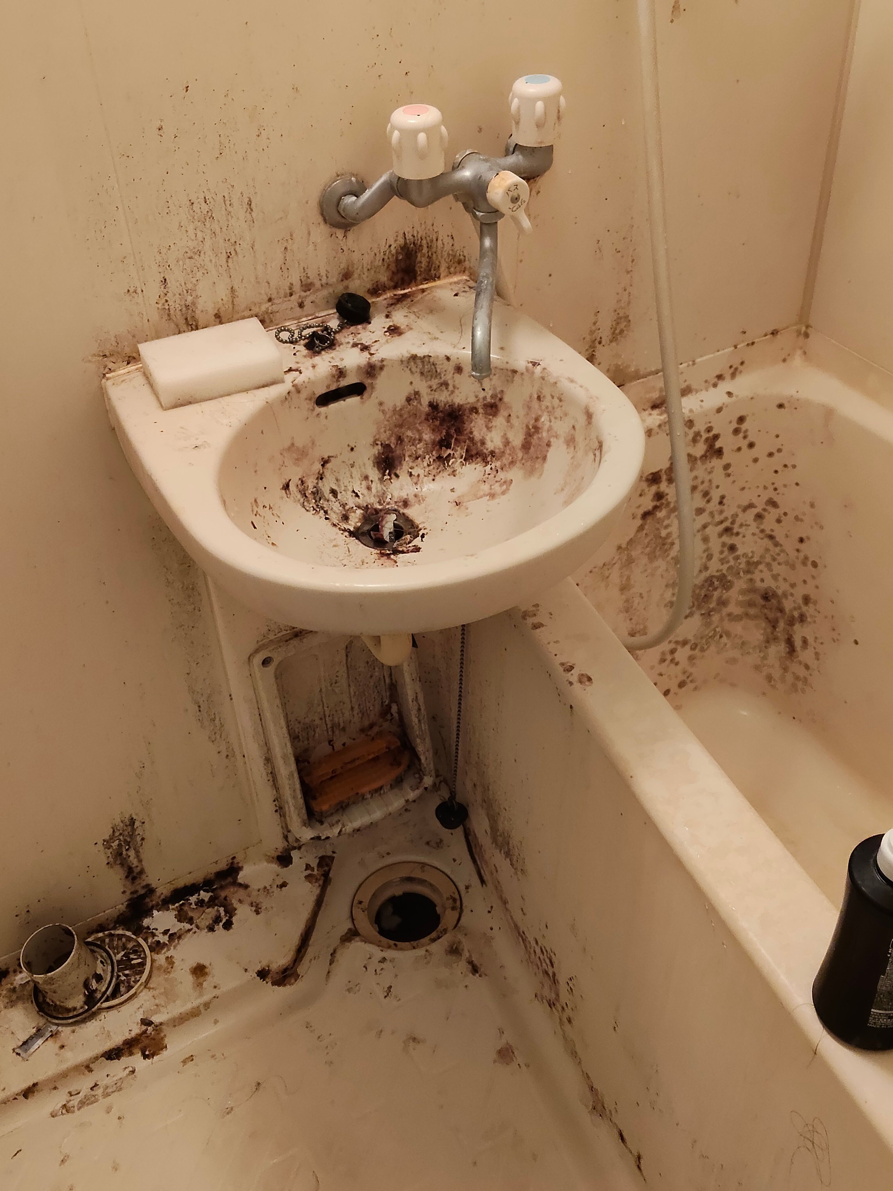 開始時間変更〜ゴミ放置のためシミになった浴室やトイレ等現在の状況はなるべく事前に写真等でお知らせご説明ください🙇♂️作業時間も大幅にかかってしまうため次のお客様にも多大なご迷惑がかかります。よろしくお願いします。本日もありがとうございました🙇♂️