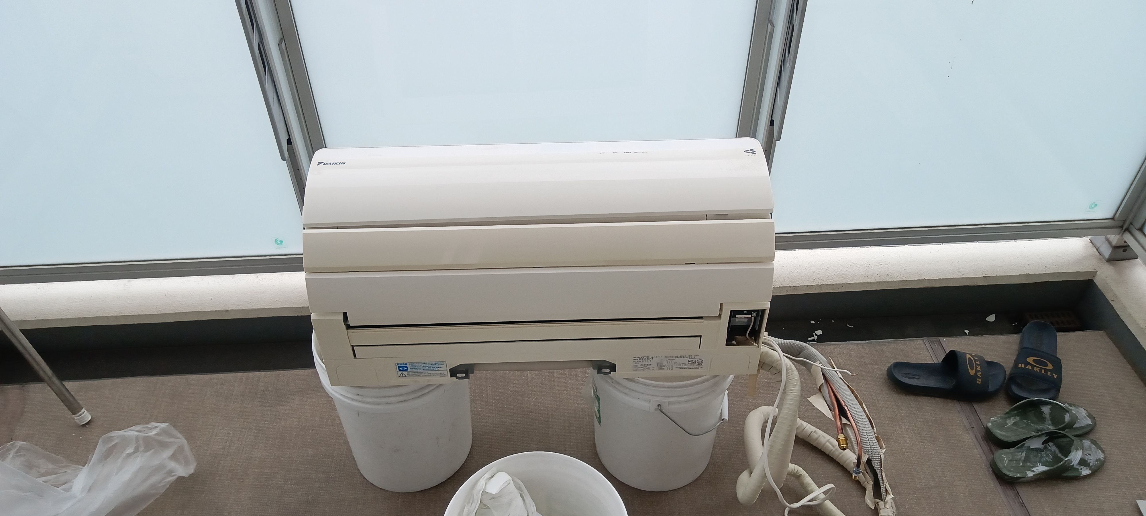 本日はギックリ腰も何のその😑😤しっかり痛み止め飲んでいざ😤半年ぶりぐらいに背抜き完全分解洗浄😤難敵12年ものうるさらさんです😉室内機取り外し😤分解いきます🙌