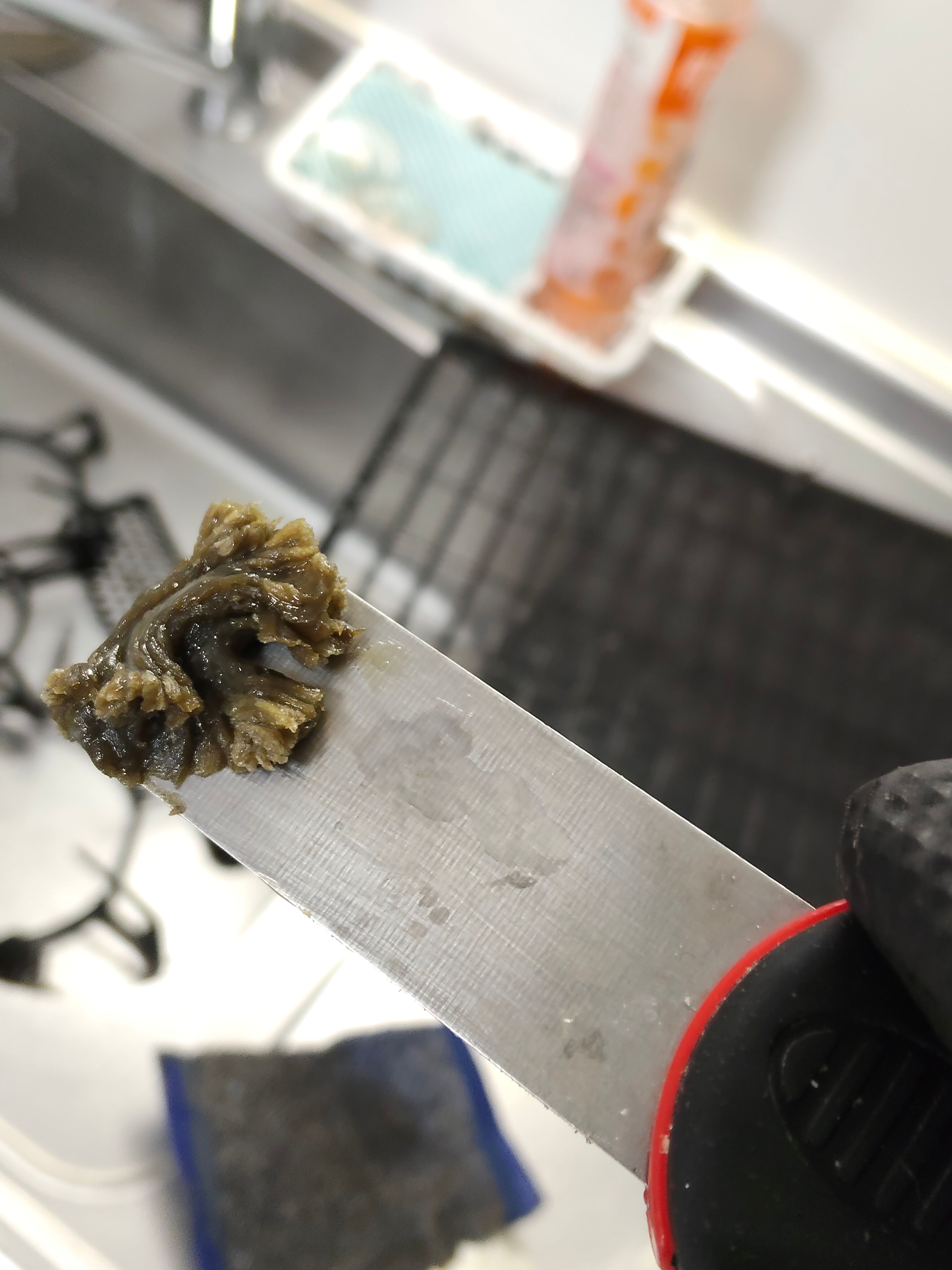 削り取りの途中ですが下の色が違う部分が方がアフターです💁