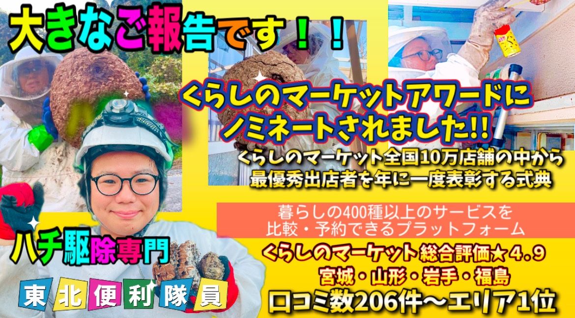 引き続き、東北便利隊のハチ駆除サービスをどうぞよろしくお願いいたします。