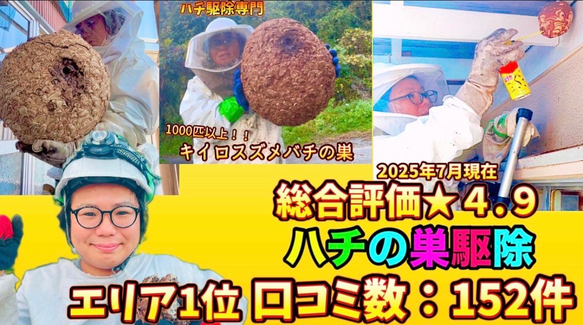 ☞口コミ200件◉エリア1位【当日予約可&即返信】◤ハチ駆除専門11年◢実績2000件〜お気軽にお問合せください!