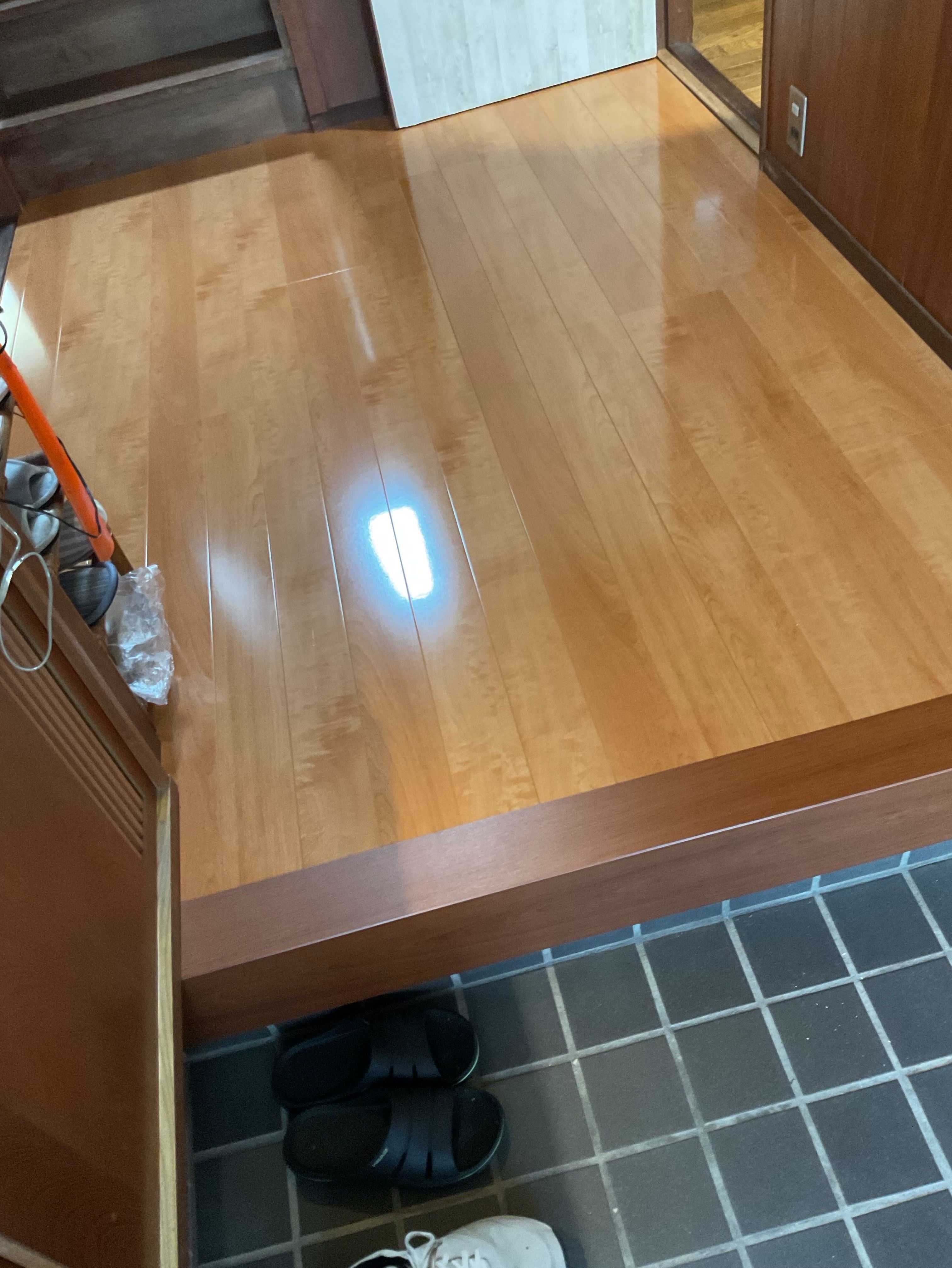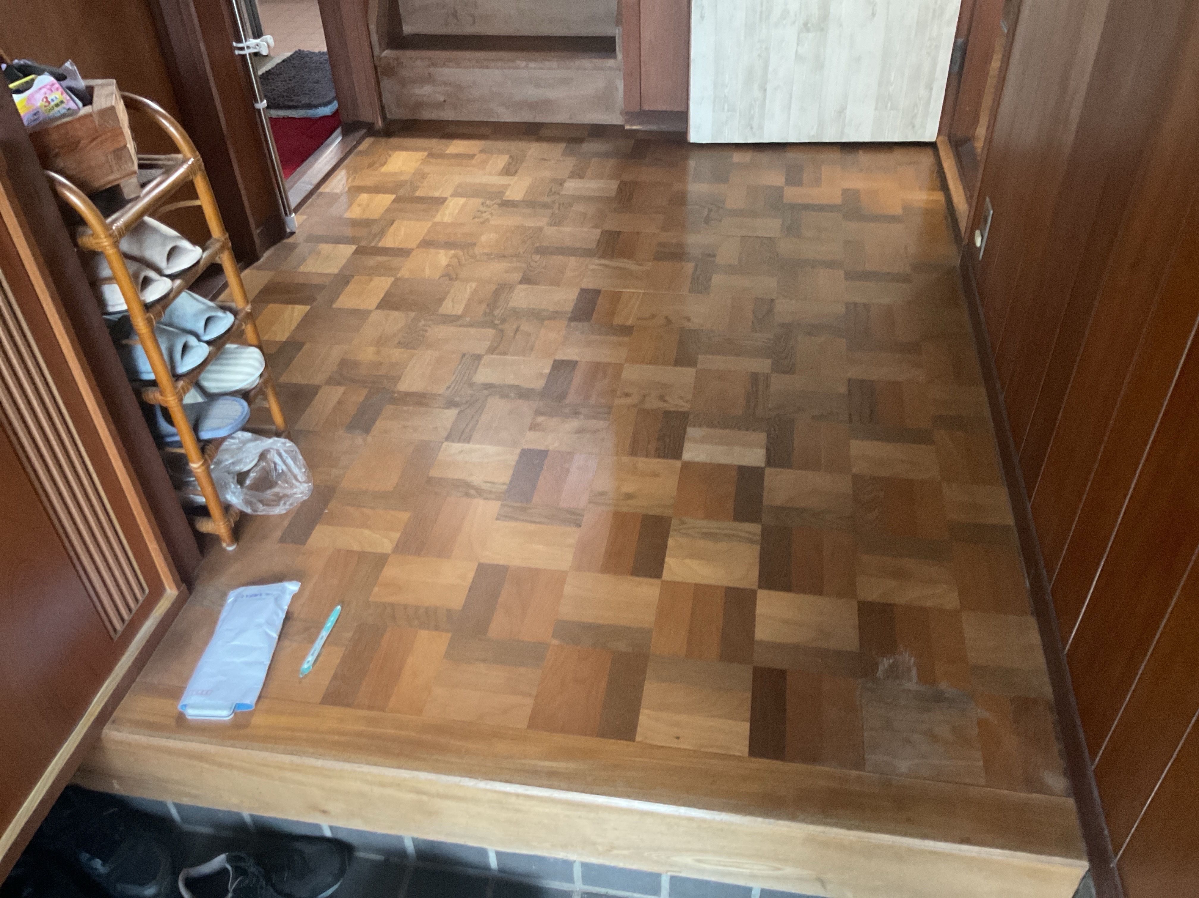 古くなった床がたわみ、貼り替えの依頼が来ました。綺麗になって喜んでもらえました。