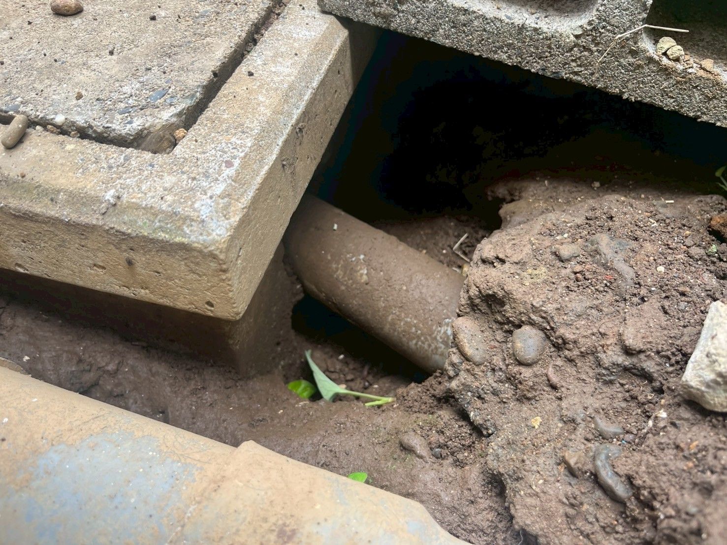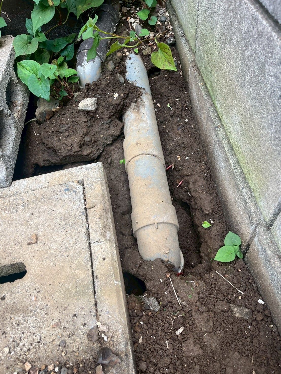 建物外周やお庭などにある、排水管、排水桝の周辺の土が無くなってしまい、穴が開いてしまっています。