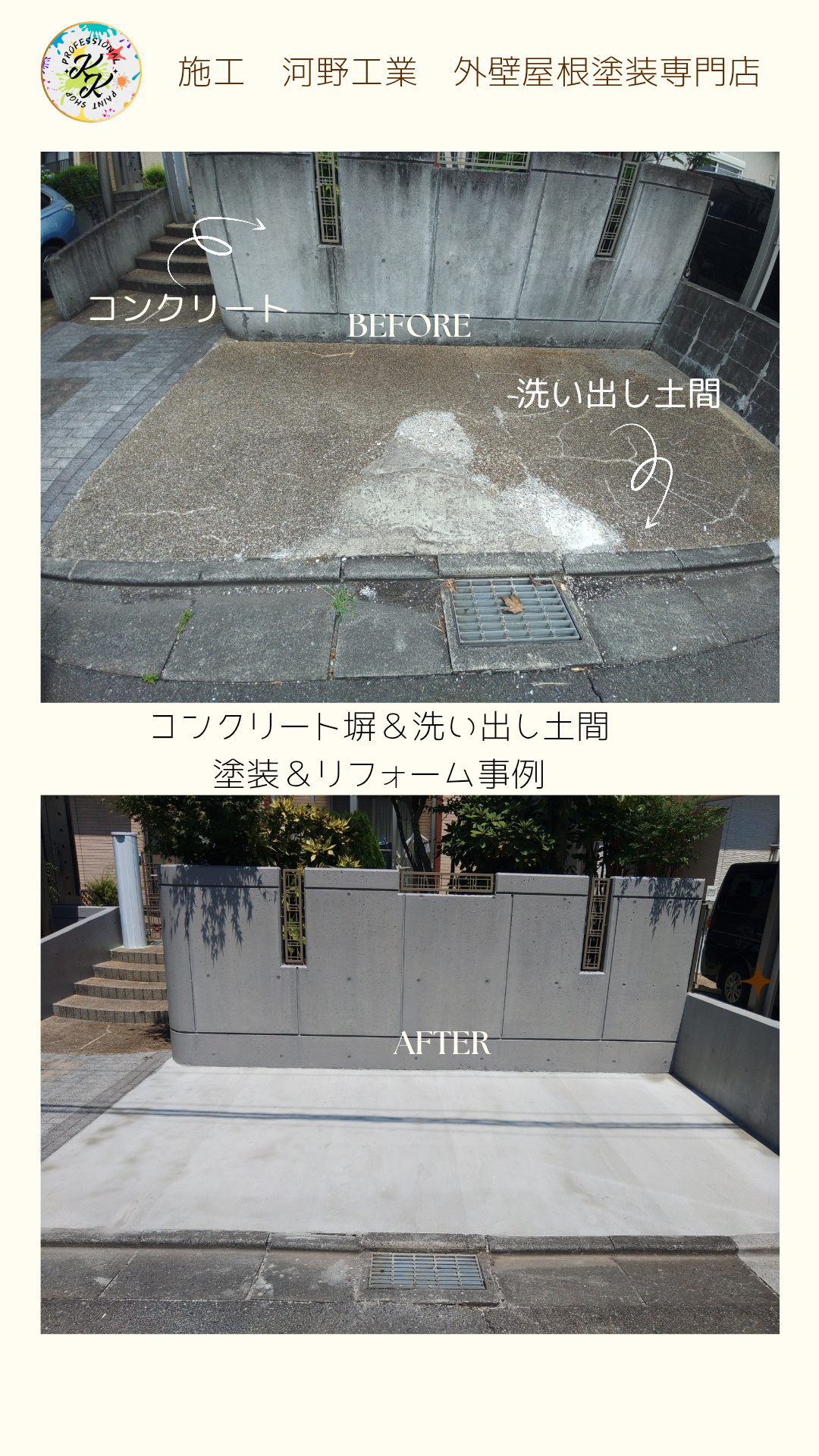 綺麗に洗浄し、コンクリート専用塗料のフッ素で