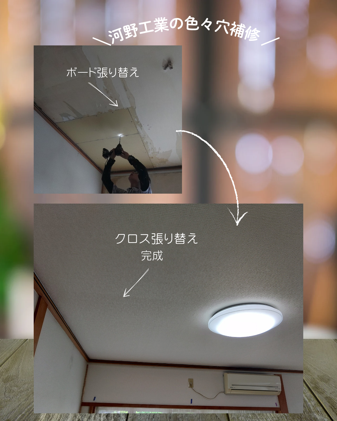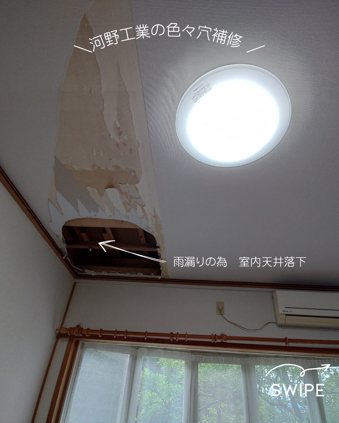 雨漏りの為、1階の天井が落ちた状態で、非常に危険な状態でした。