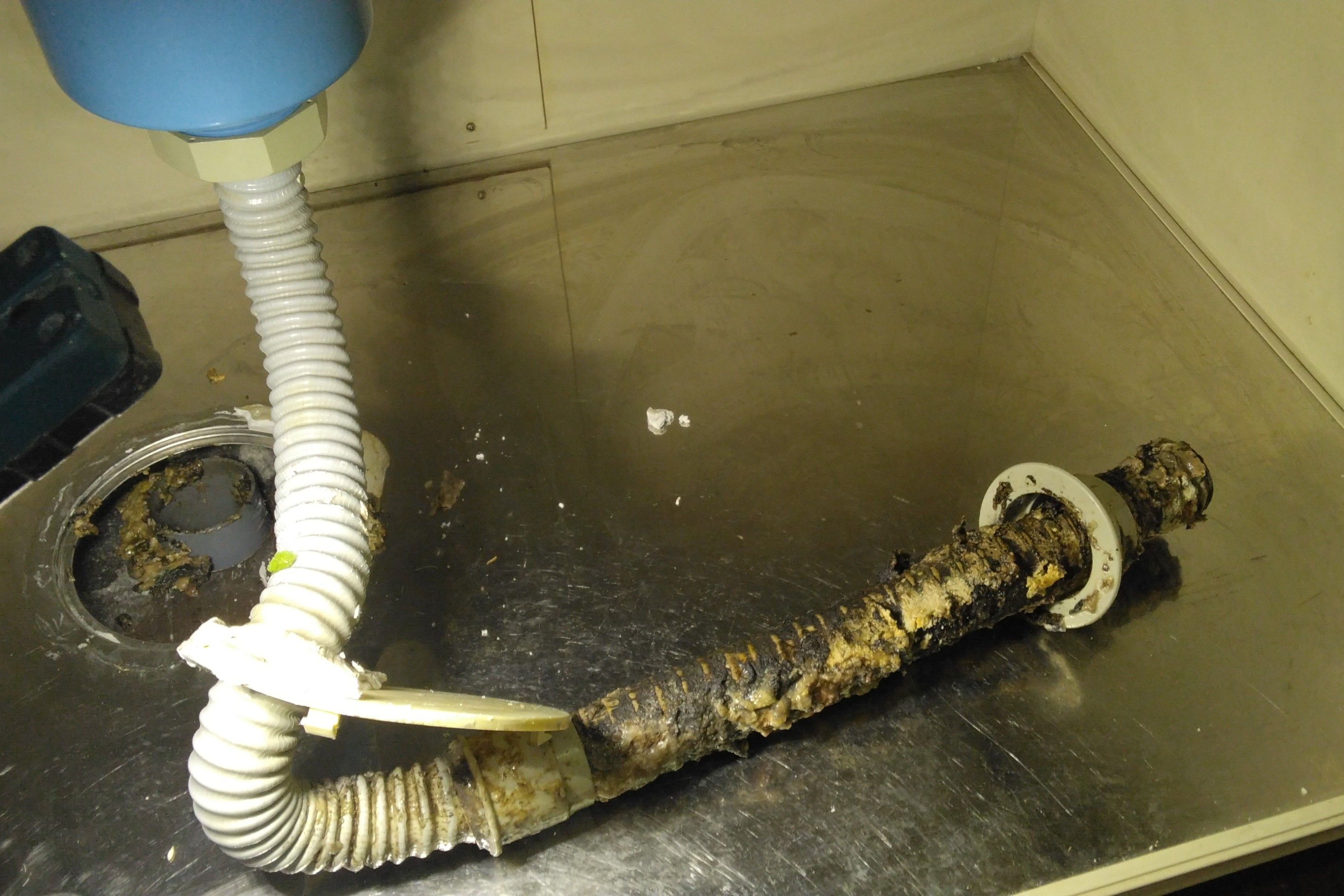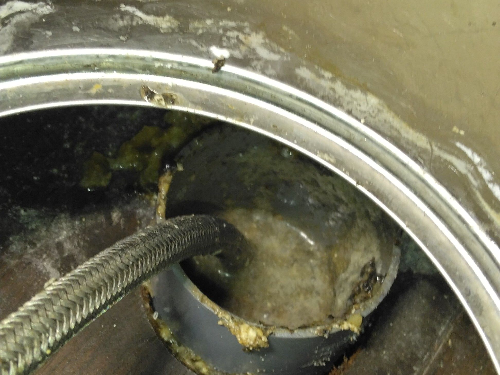 排水ホースを引き抜いて見ると、脂汚れでギットギト