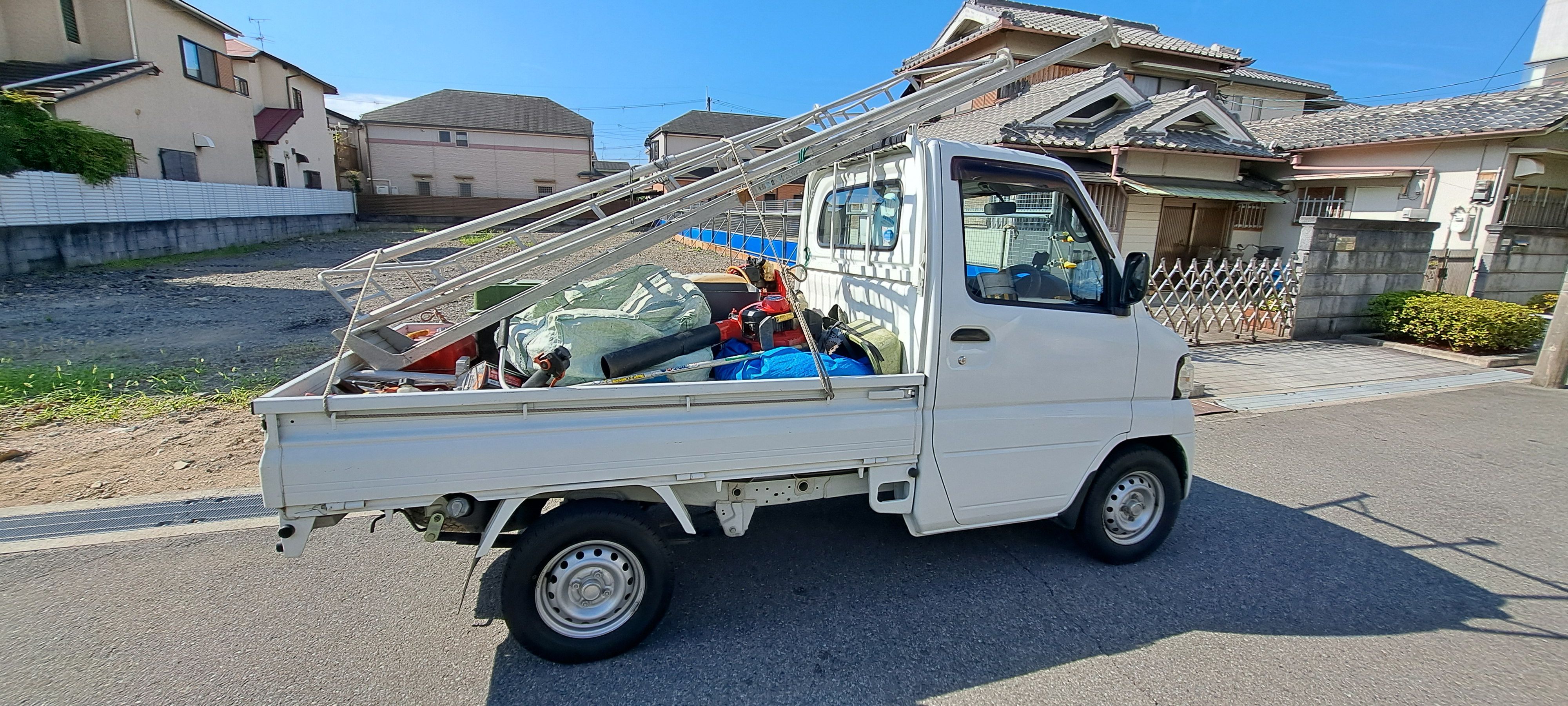 以前の軽トラは快調だったのですが、難点がひとつ💦先代(親父)の意向で作業車にエアコンは無用❗…エアコンが装備されてませんでした(笑)💦でもさすがに近年の酷暑に堪えるには無謀の判断で、中古ですがエアコン装備の軽トラに乗り換えました。気持ちも新たに精進して参りますので、これからもガーデナー清水をよろしくお願いいたします。