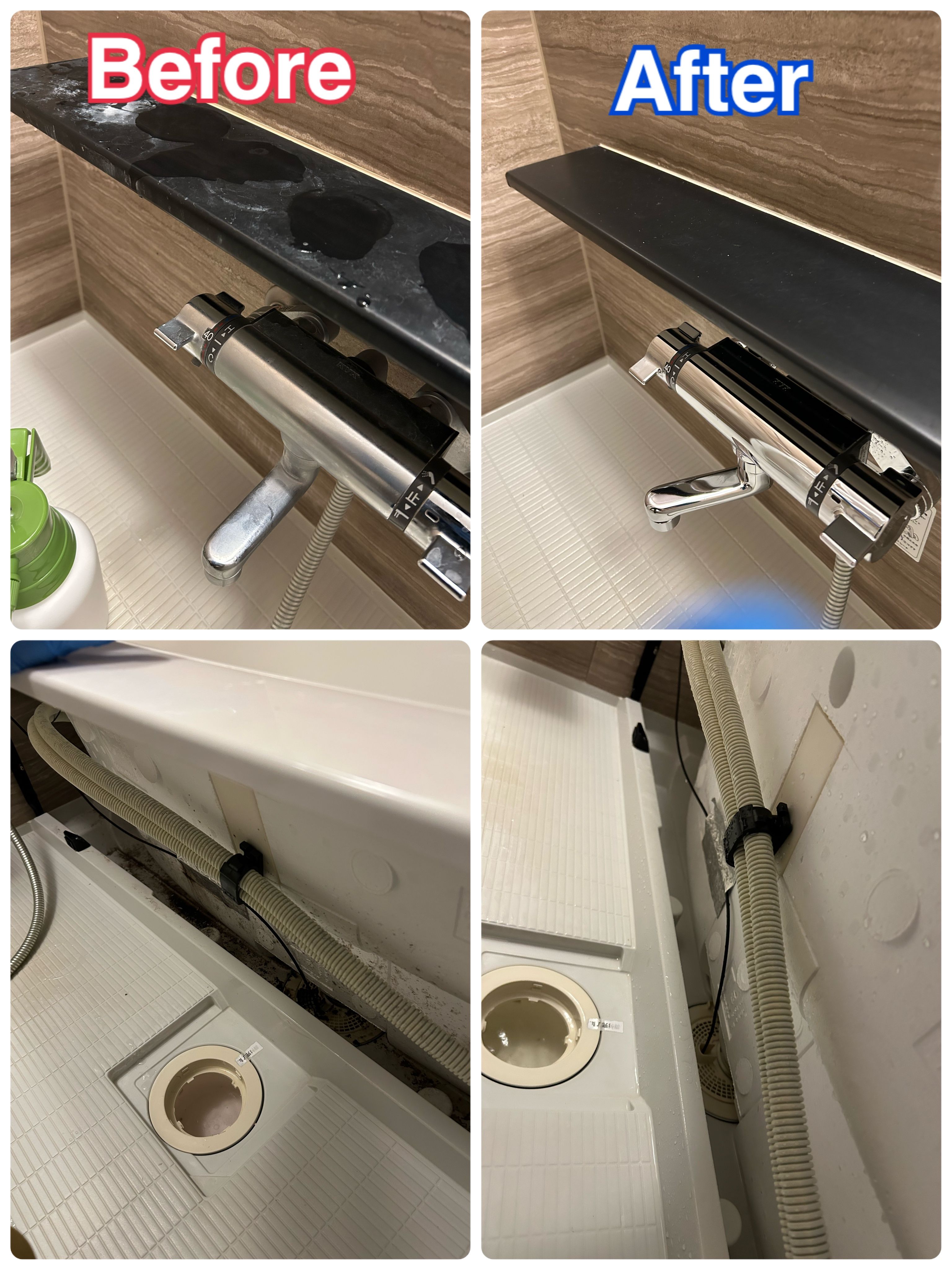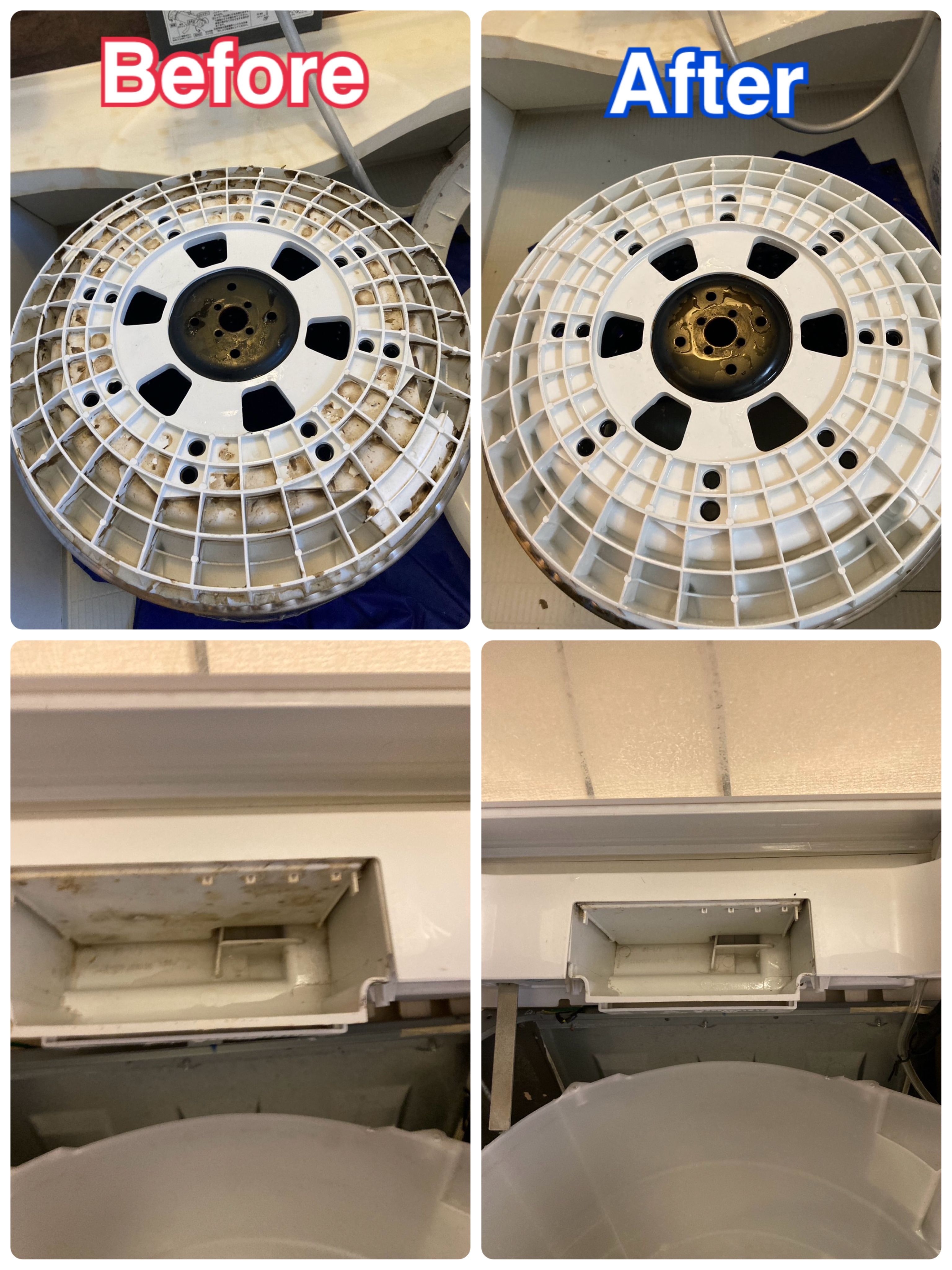 洗濯機は、「黒いカスが浮いてきた」というお悩みからのご依頼です! 市販のカビ取り剤をやっているが黒いカスがずっと出てくるとのことでした。 浴室は、「エプロン内のカビや匂いが気になる」というお悩みからのご依頼です! カラン周辺に水垢もありましたのでそこも綺麗に取りきれました!