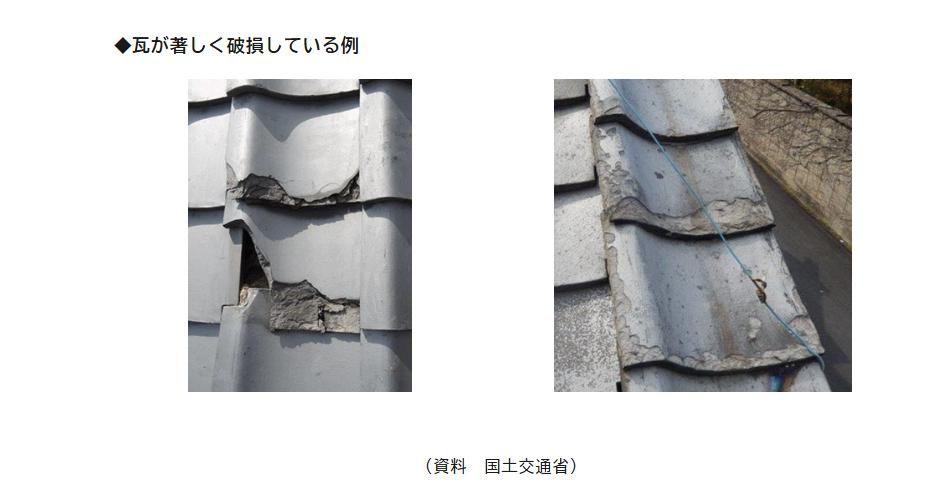 ①平成13年(2001年)より前に建てられた瓦屋根の建築物で、平成13年(2001)年以降に瓦屋根が改修されていない