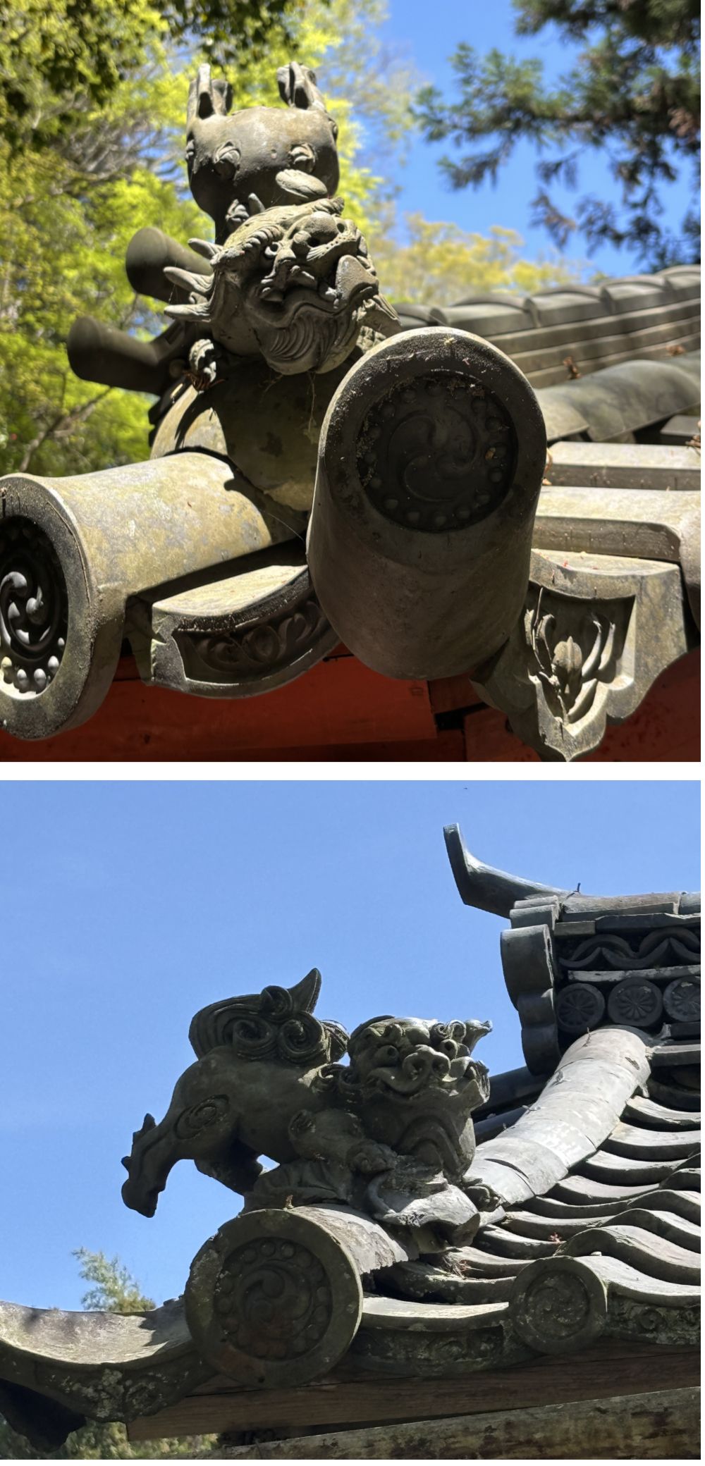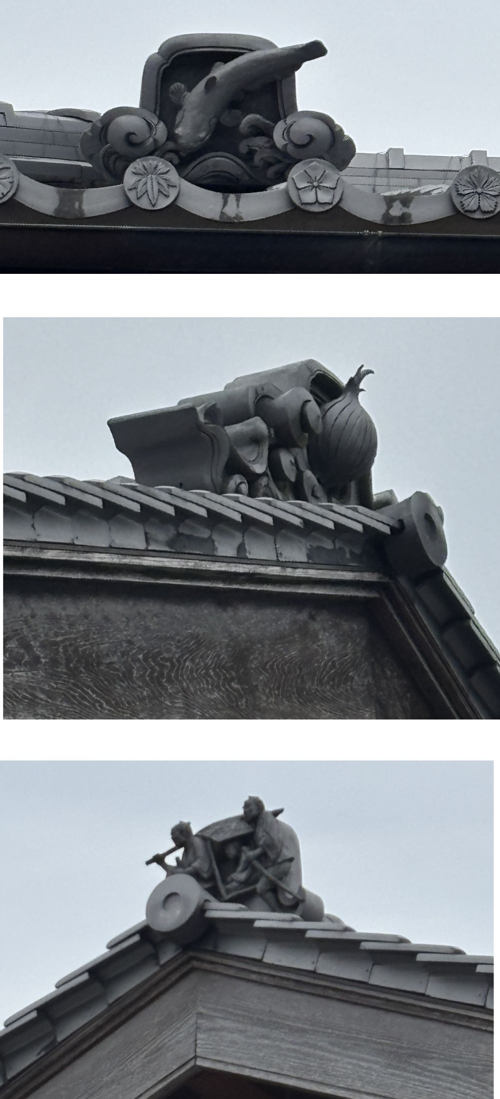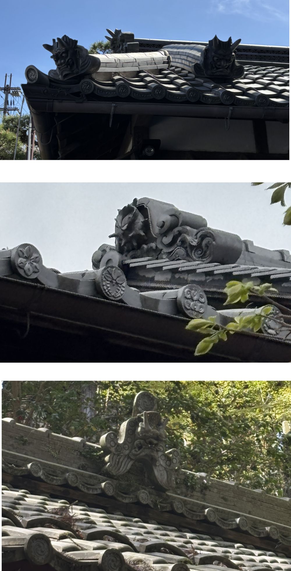 今回見かけた瓦屋根の写真は、日本瓦の屋根に施されている“飾り瓦”たちです。 鬼瓦や獅子、人物や動物など、屋根の上にはいろいろな表情があって、見ているだけでも少し楽しくなります。 実はこれらには、厄除けや家を守る意味も込められていて、昔の人の想いや工夫が詰まっています。