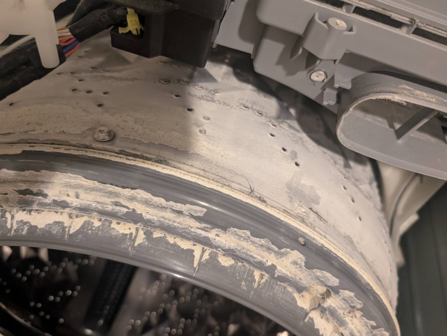また洗濯槽の外側は石鹸系の洗剤を使っているお家の特長の白い表面に。