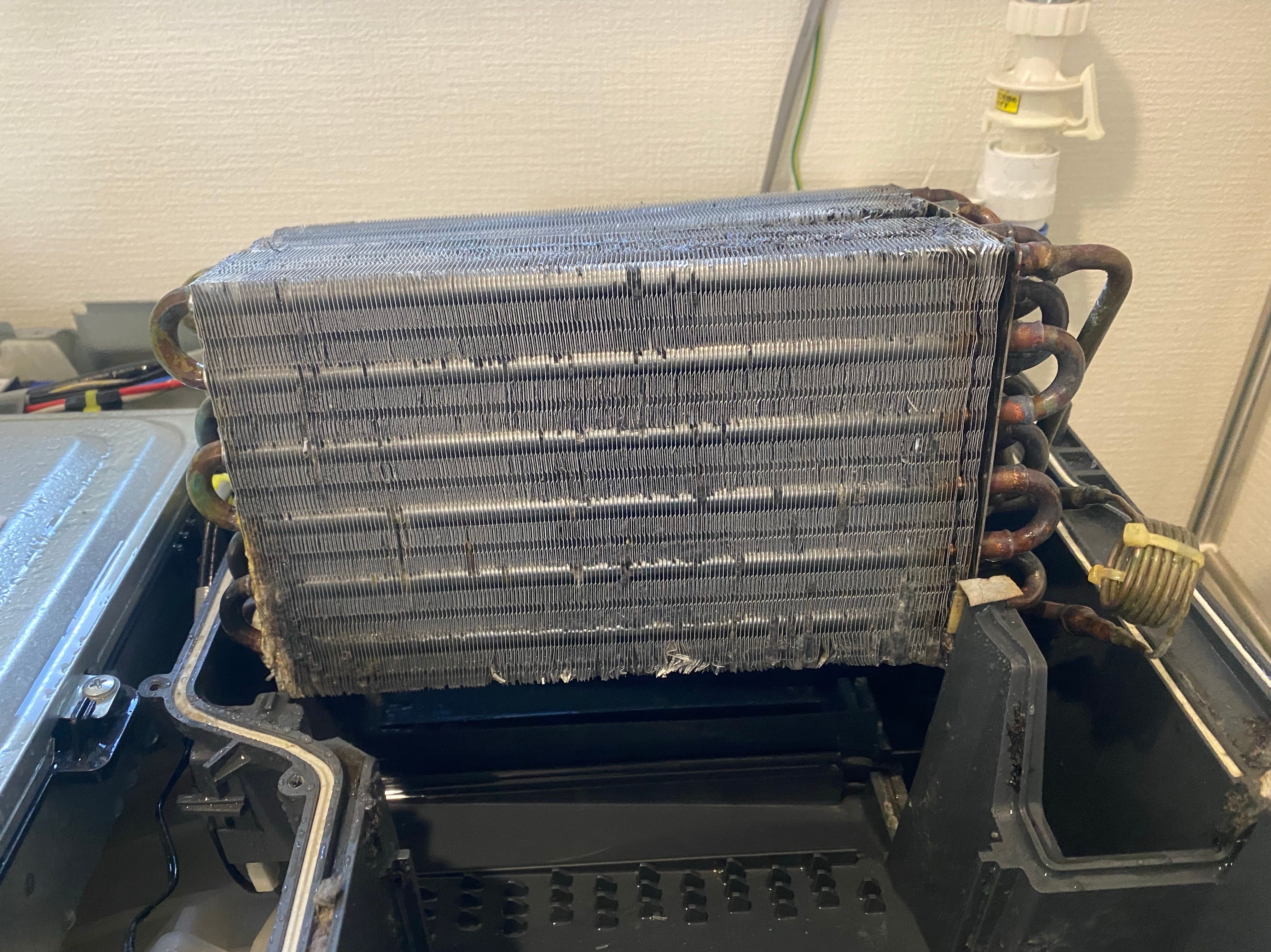 「乾燥時間が長い」「生乾きのようなニオイがする」とのお悩みで、点検すると内部にホコリ・洗剤カス・カビ汚れが蓄積している状態でした。