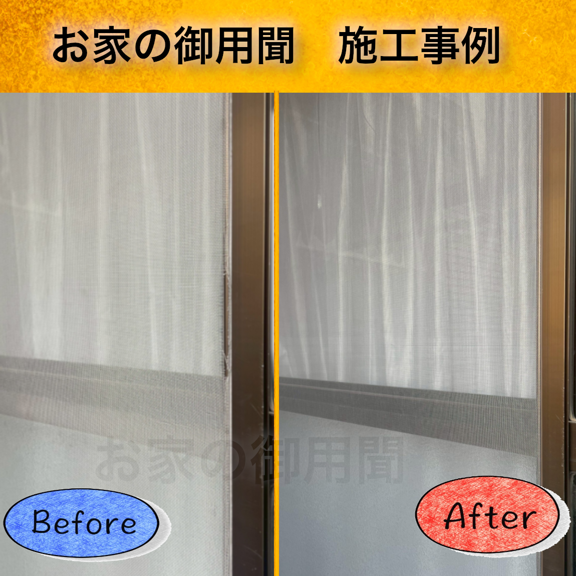 網戸の張替えになります。 経年劣化による破れでお悩みがあり張替えをご依頼いただきました。 張り替えた網戸は空気を綺麗にし、虫の侵入を防ぐことができます。 外からも見られてしまうので、破れや汚れがある方はぜひ張り替えましょう! くらしのマーケットでの合計価格:4,000円