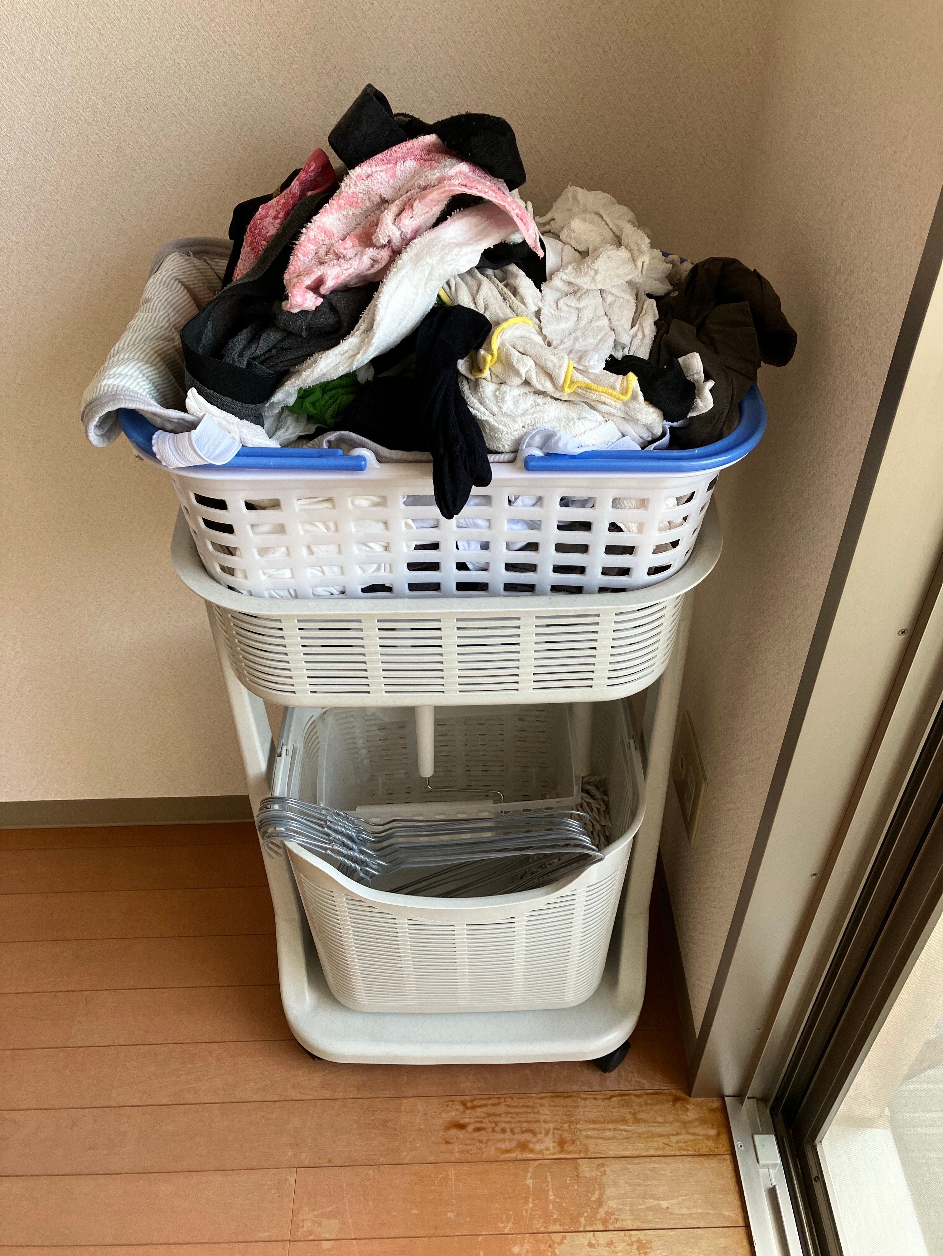 【整理収納】洗濯の小さなイラッ。干す時に、洗濯カゴを下に置くと、取るたびに屈む。地味にしんどい。台の上に置けば、解消。腰の負担も軽くなり、洗濯干しがもっと楽しくなる😆洗濯ハンガーの保管方法もどうすればサッと取れて、しまえるか?いかに身体の負担や面倒をなくし、家事をこなしていく。