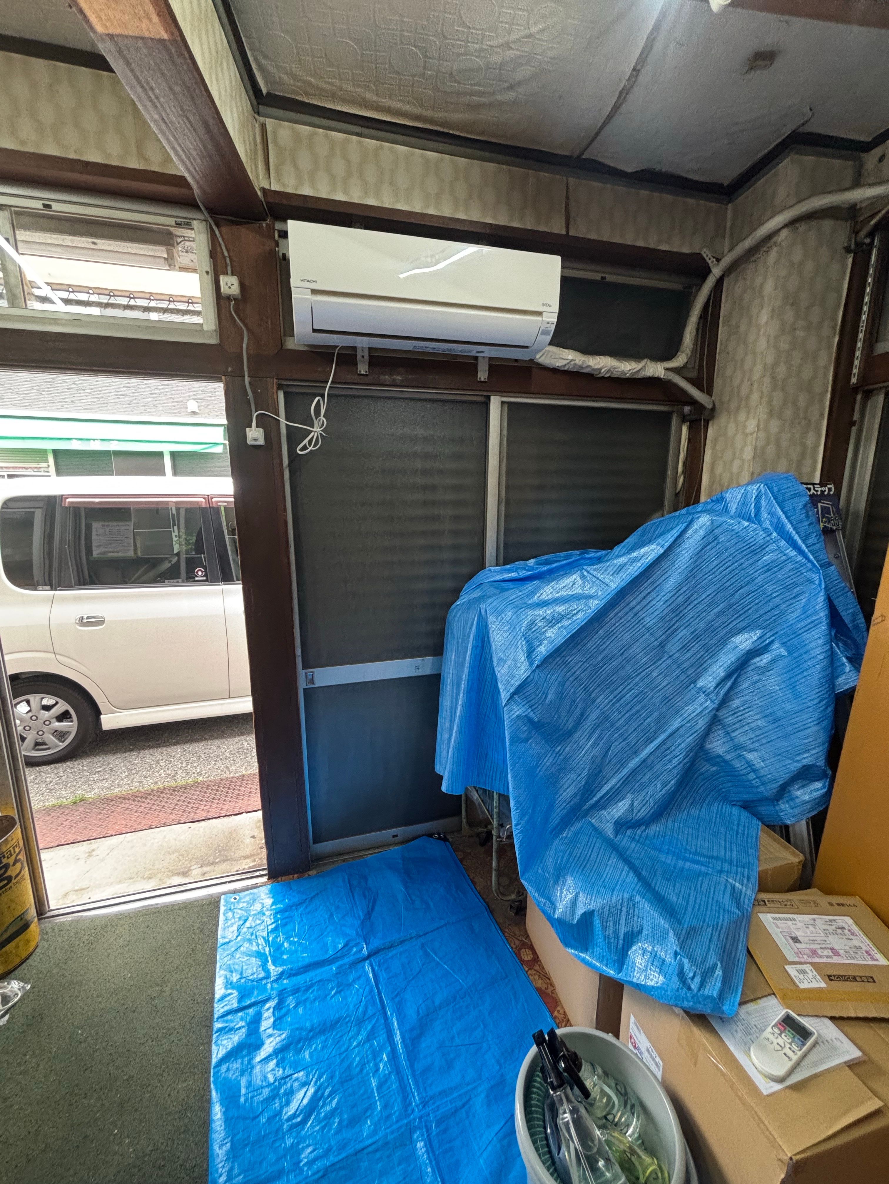その作業場を冷やすために設置されている壁掛けエアコンのクリーニングが2台と、隣の事務所のエアコン1台の計3台に室外機洗浄が2台。