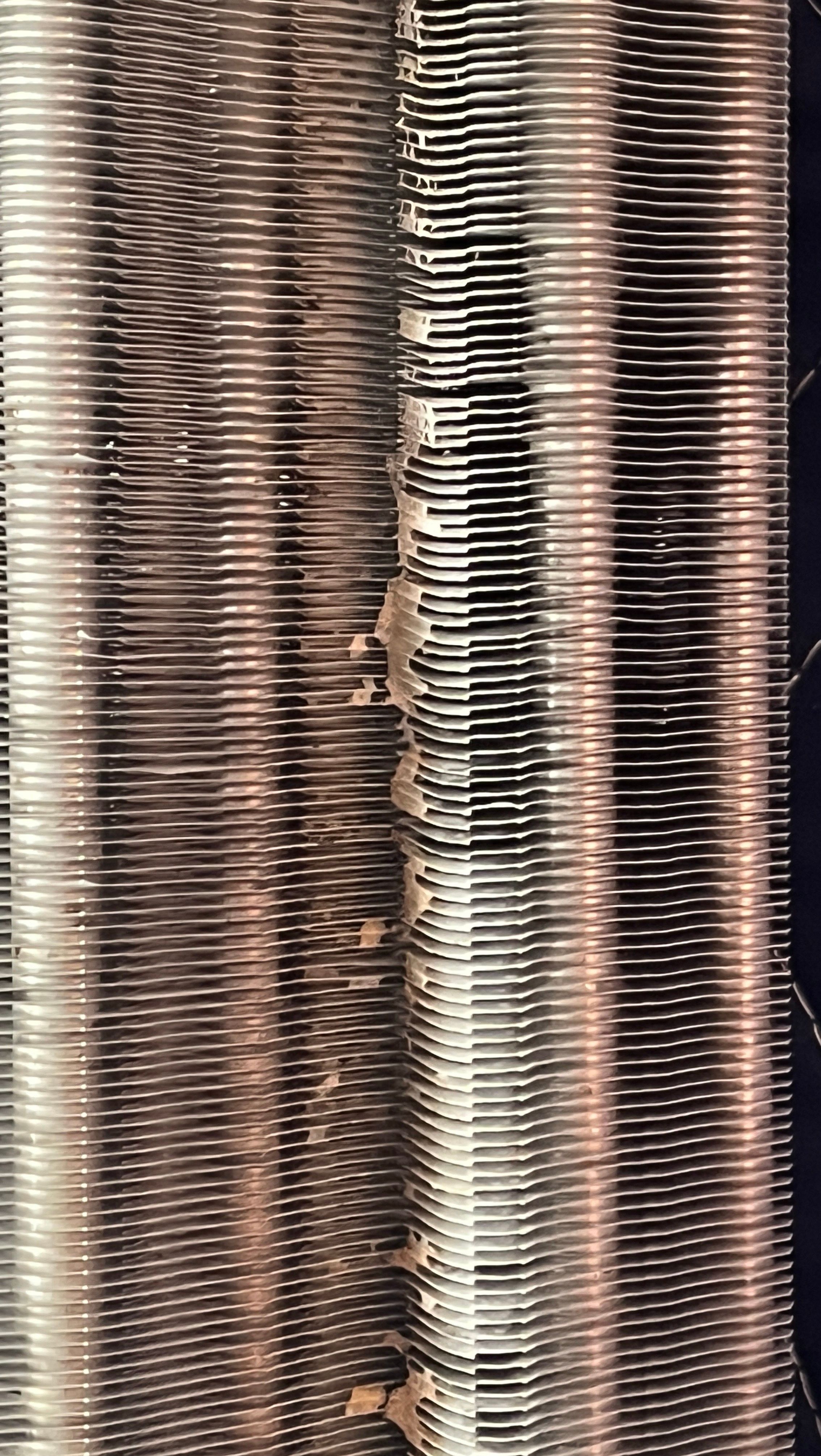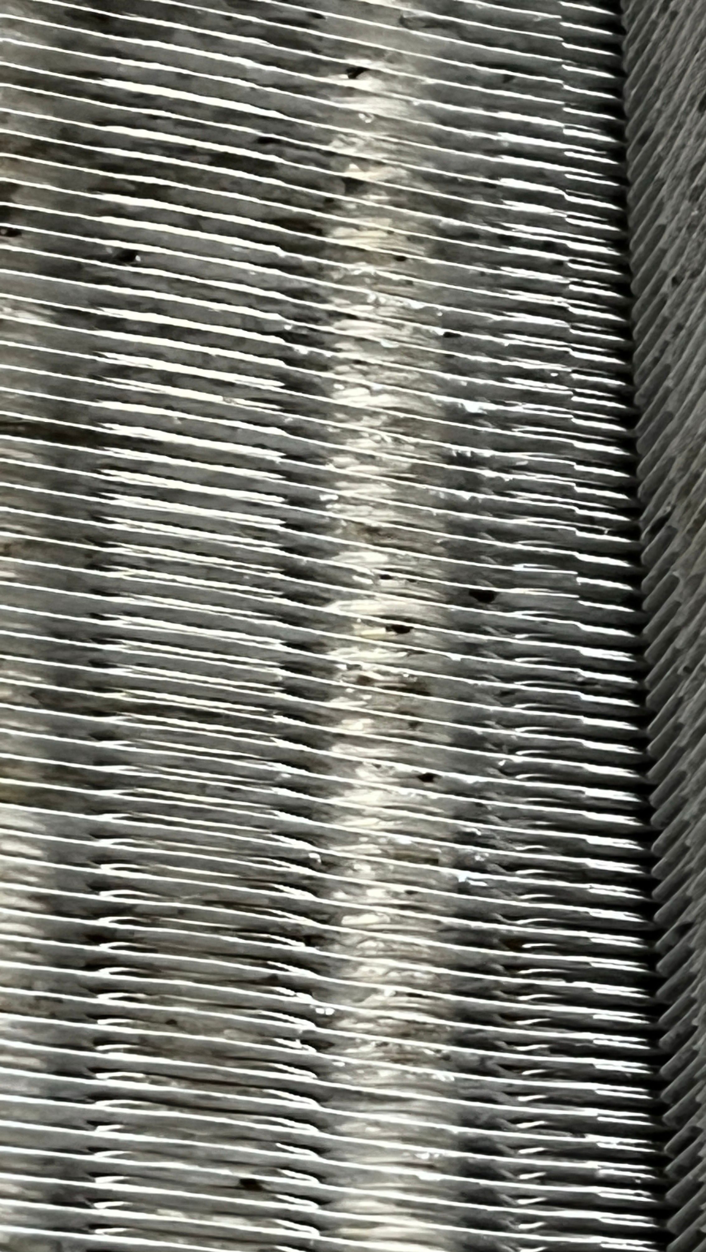 熱交換器の汚れを完全に取りきれていない状態で、汚れの上から消臭コートを行うと…汚れやカビごとコーティングされてしまいます
