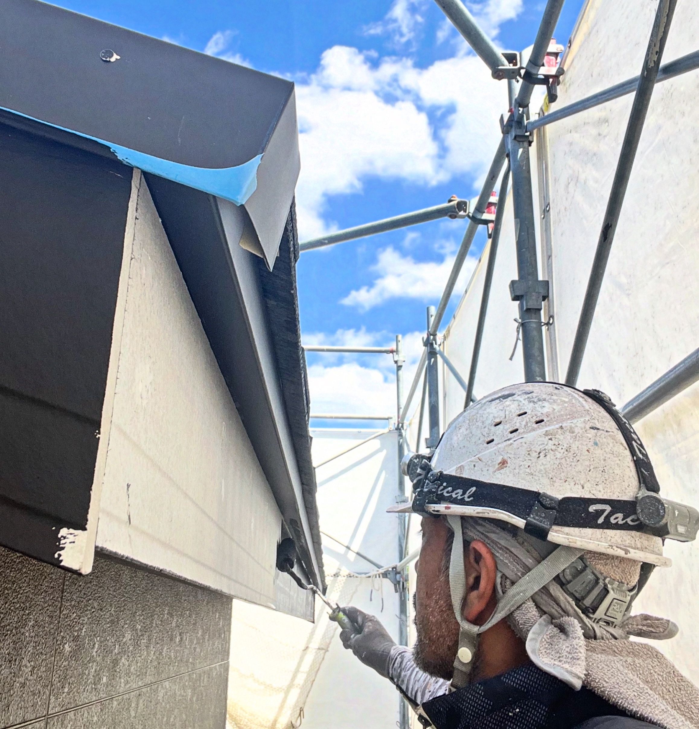 破風と鼻隠しを塗っています。
