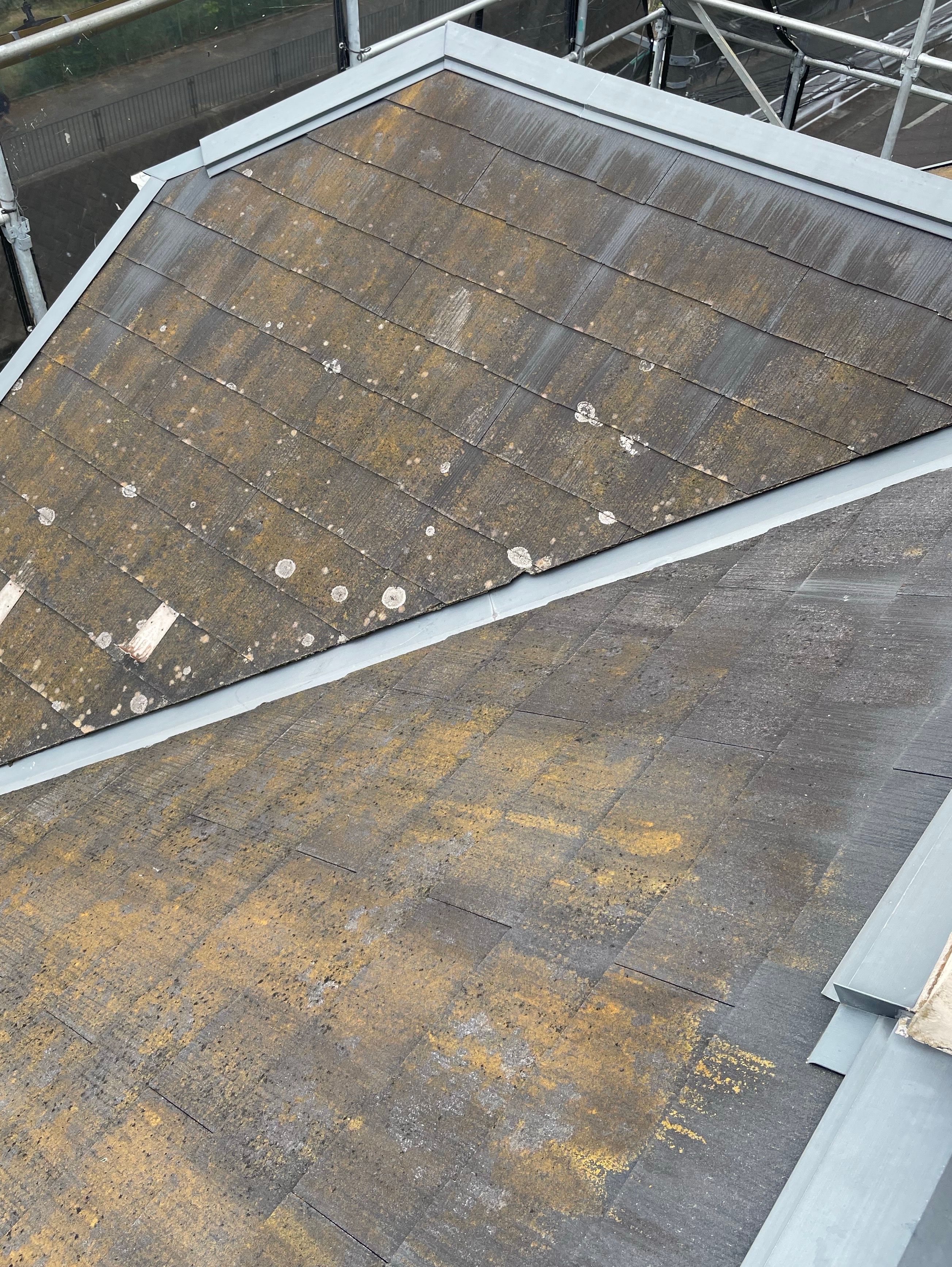 日頃より、屋根のコケやカビが気になっていた!と、お問い合わせを頂き、屋根塗装契約のご契約となったお客様の屋根の高圧洗浄作業を行いました!作業前と後の写真を見ていただくと、こんなに綺麗になるんだと大変ビックリされていました!