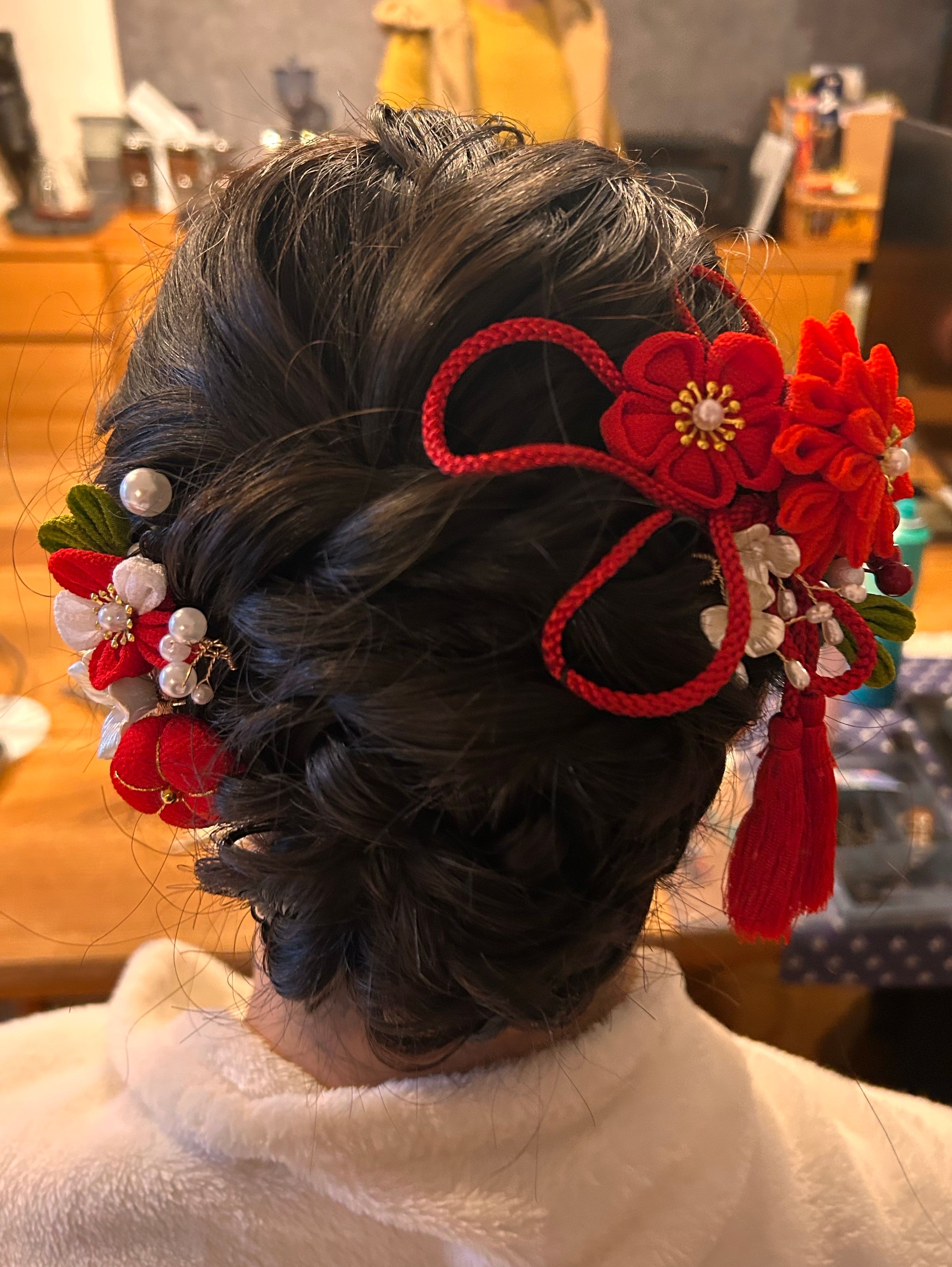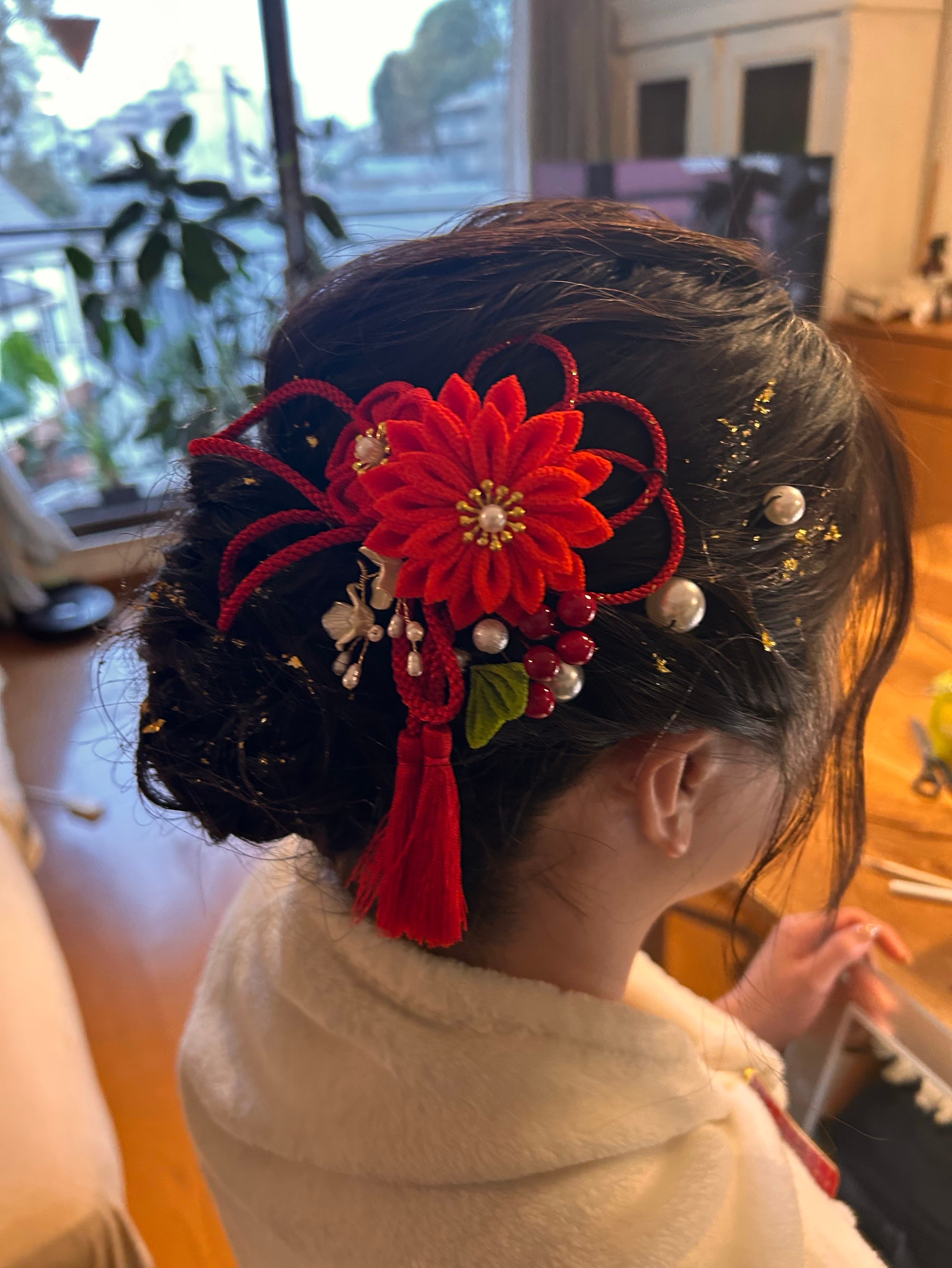 髪飾りも豪華で銀箔にパールも映えました