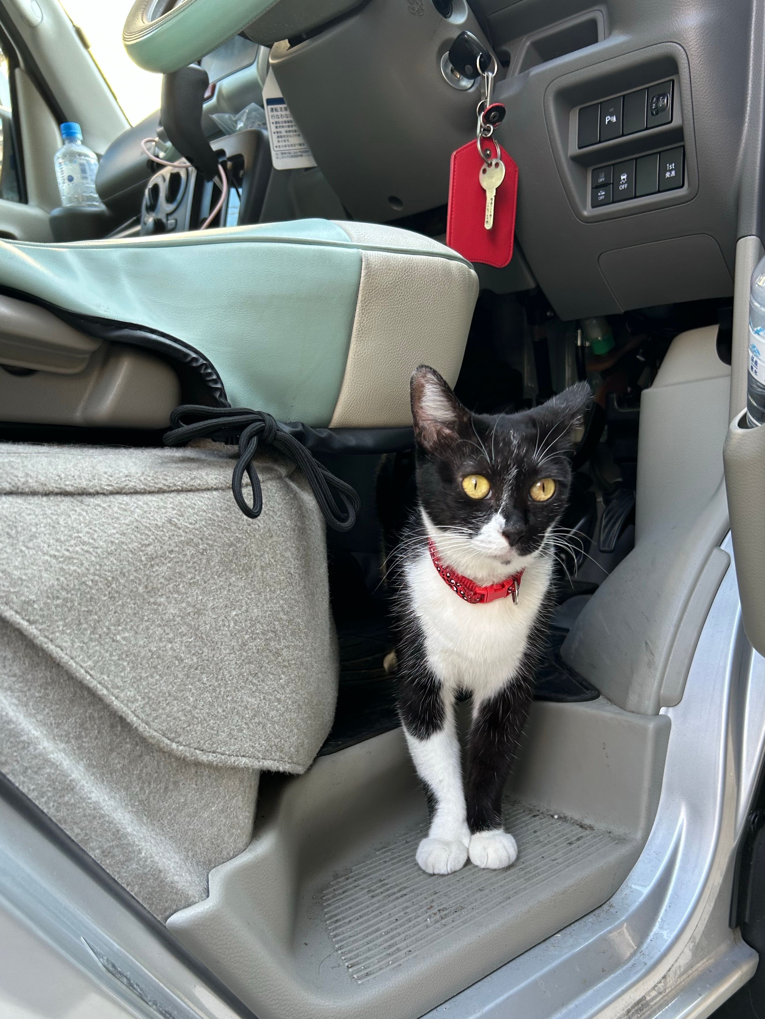 エアコンクリーニングのあと、猫ちゃんが車の中に入りなかなか出てこなかった〜!可愛いฅ^•ω•^ฅ
