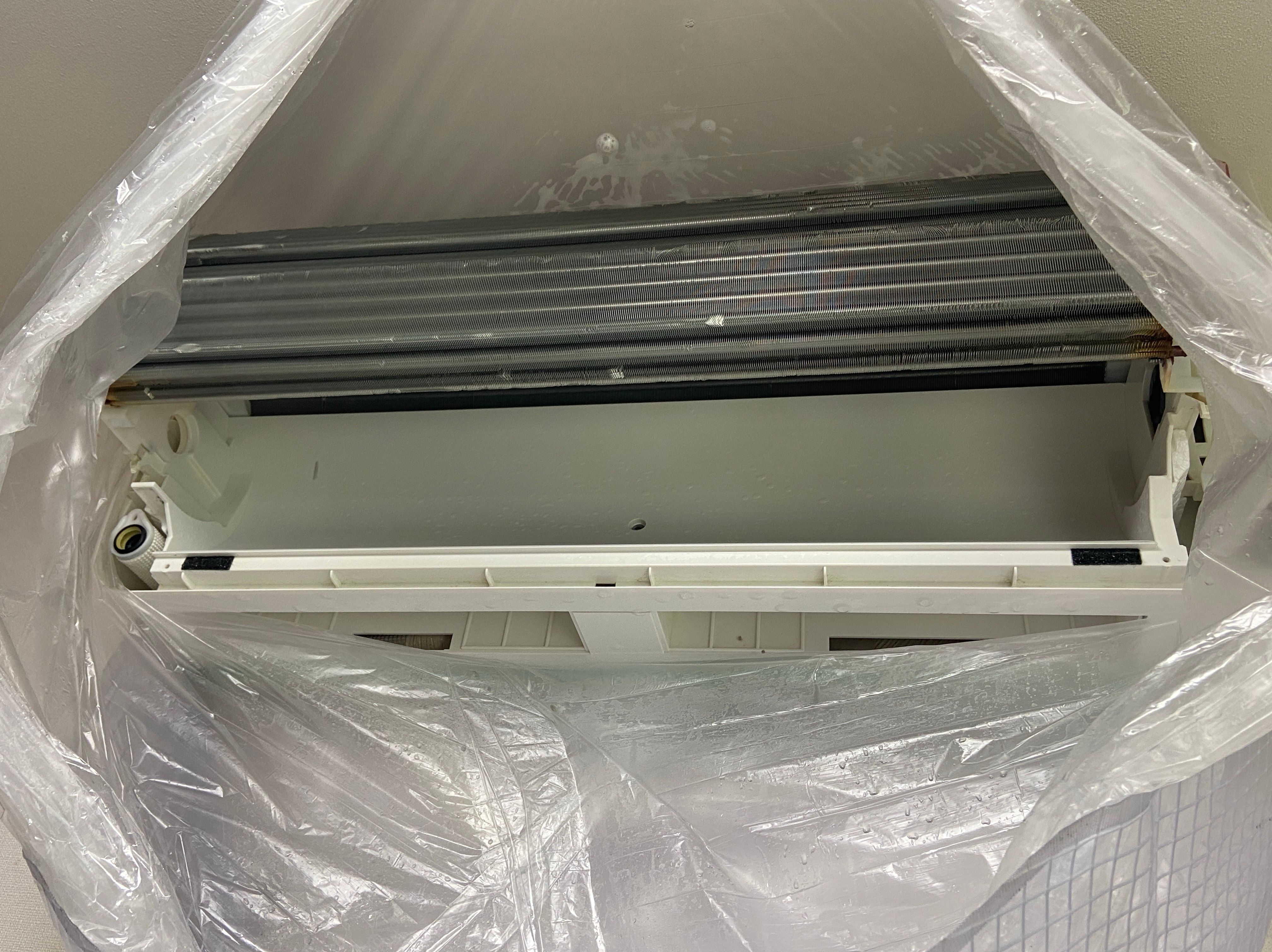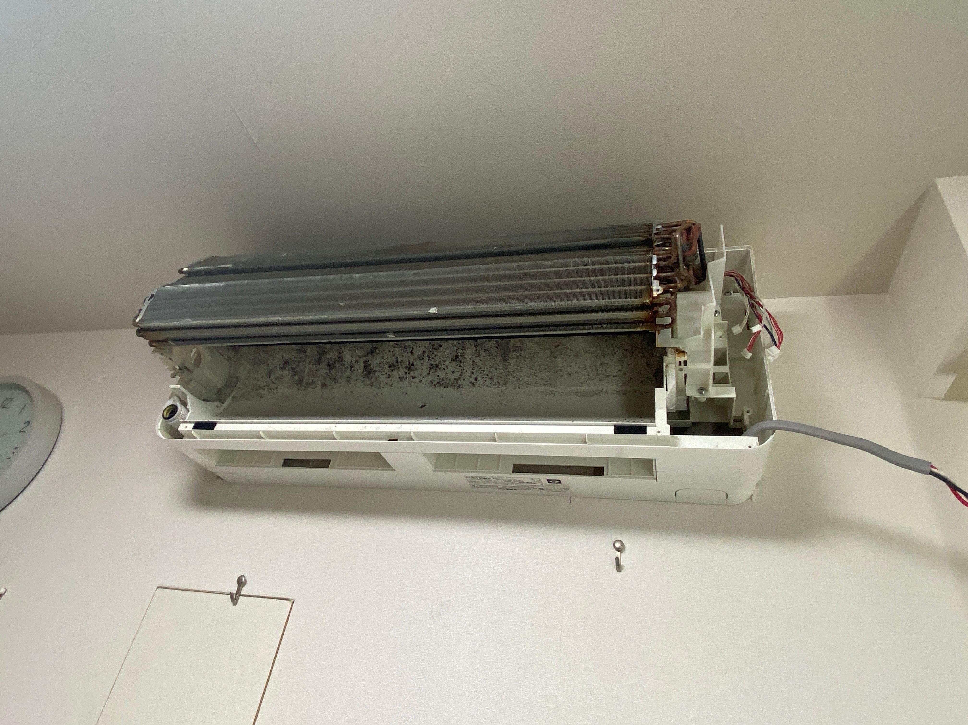 送風ファン・ドレンパンを取り外し、隠れた汚れまで洗浄