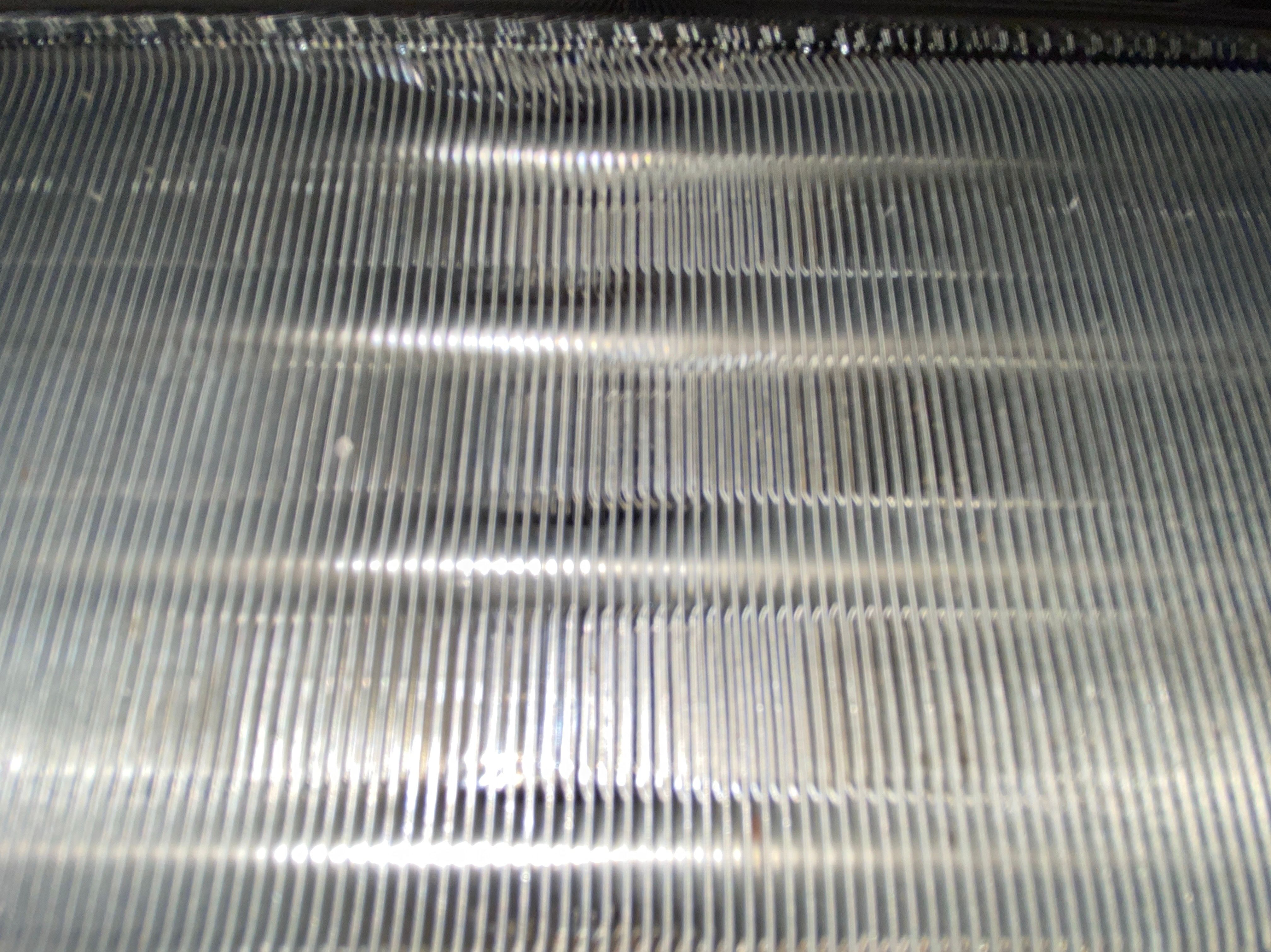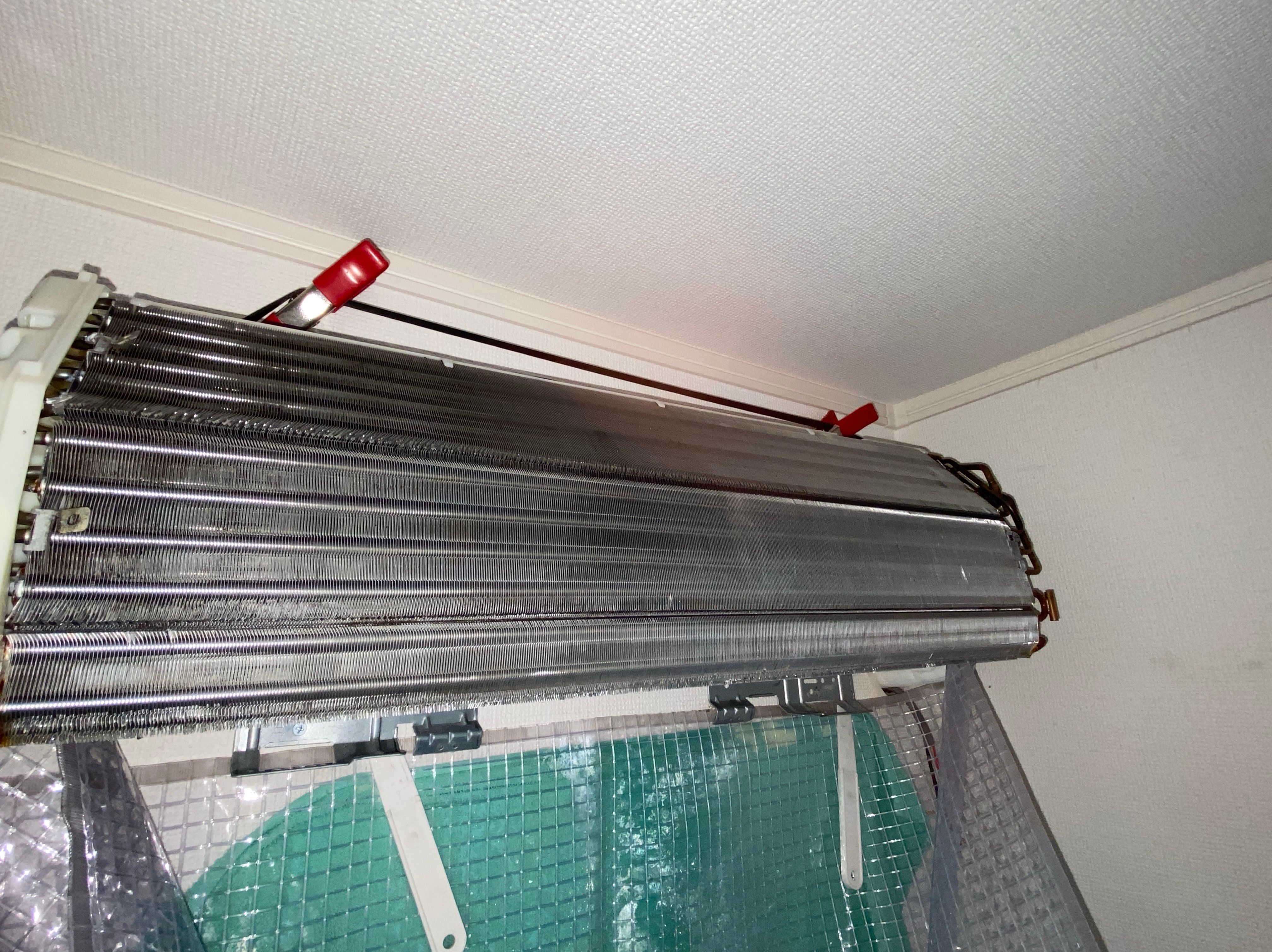 熱交換器の奥にはホコリが層になってこびりついていました。