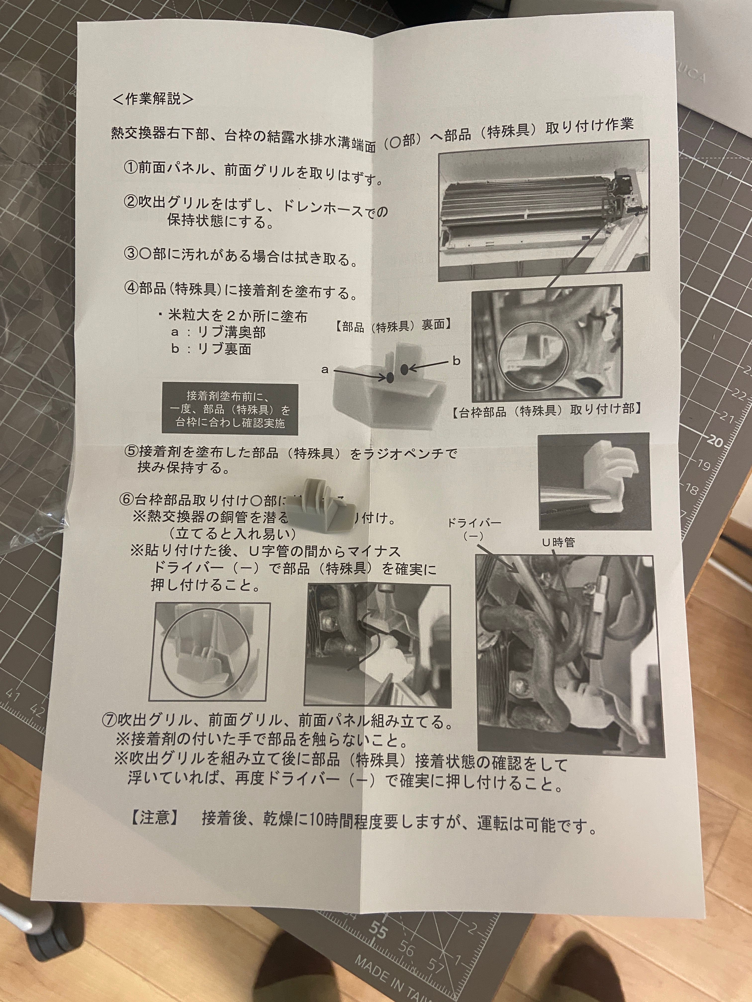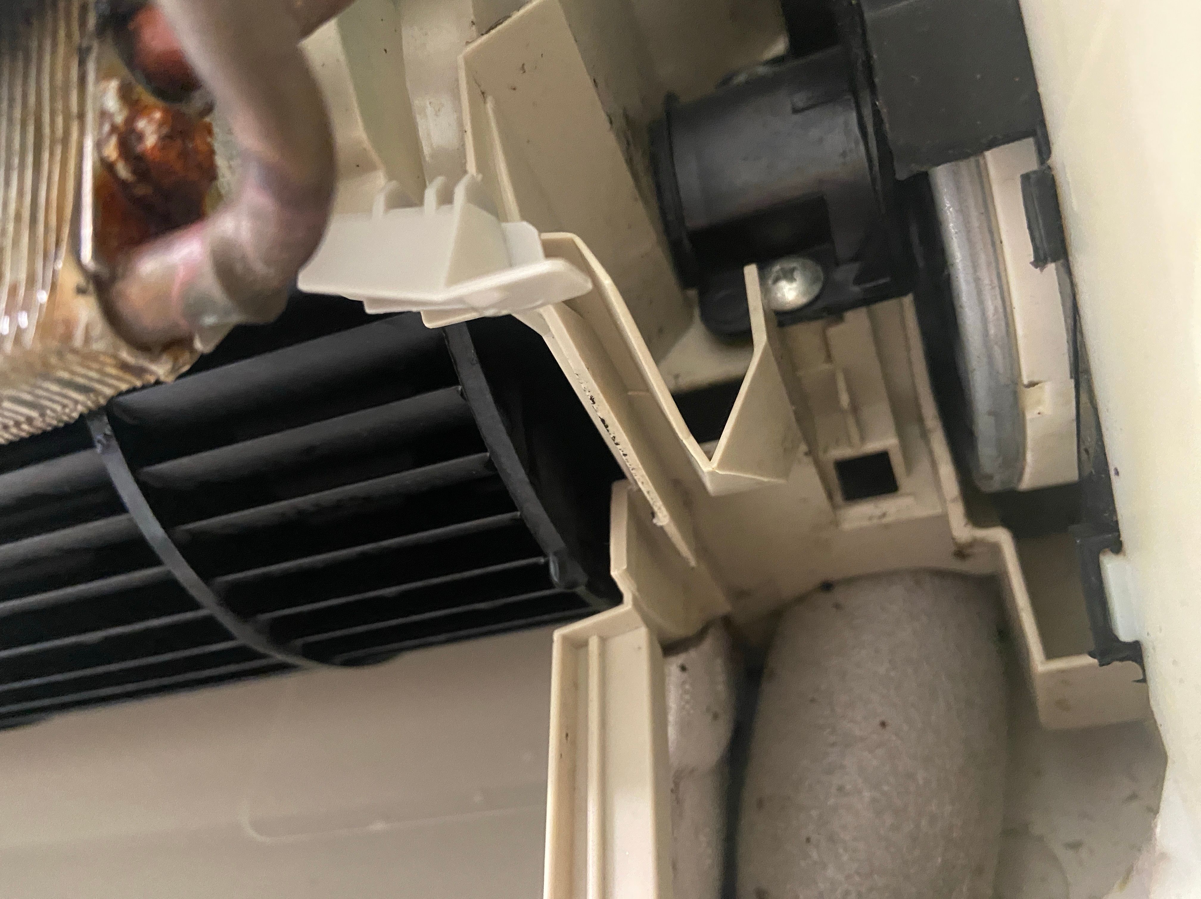 水は部品を伝って素直にドレンパンに落ちるようになり、