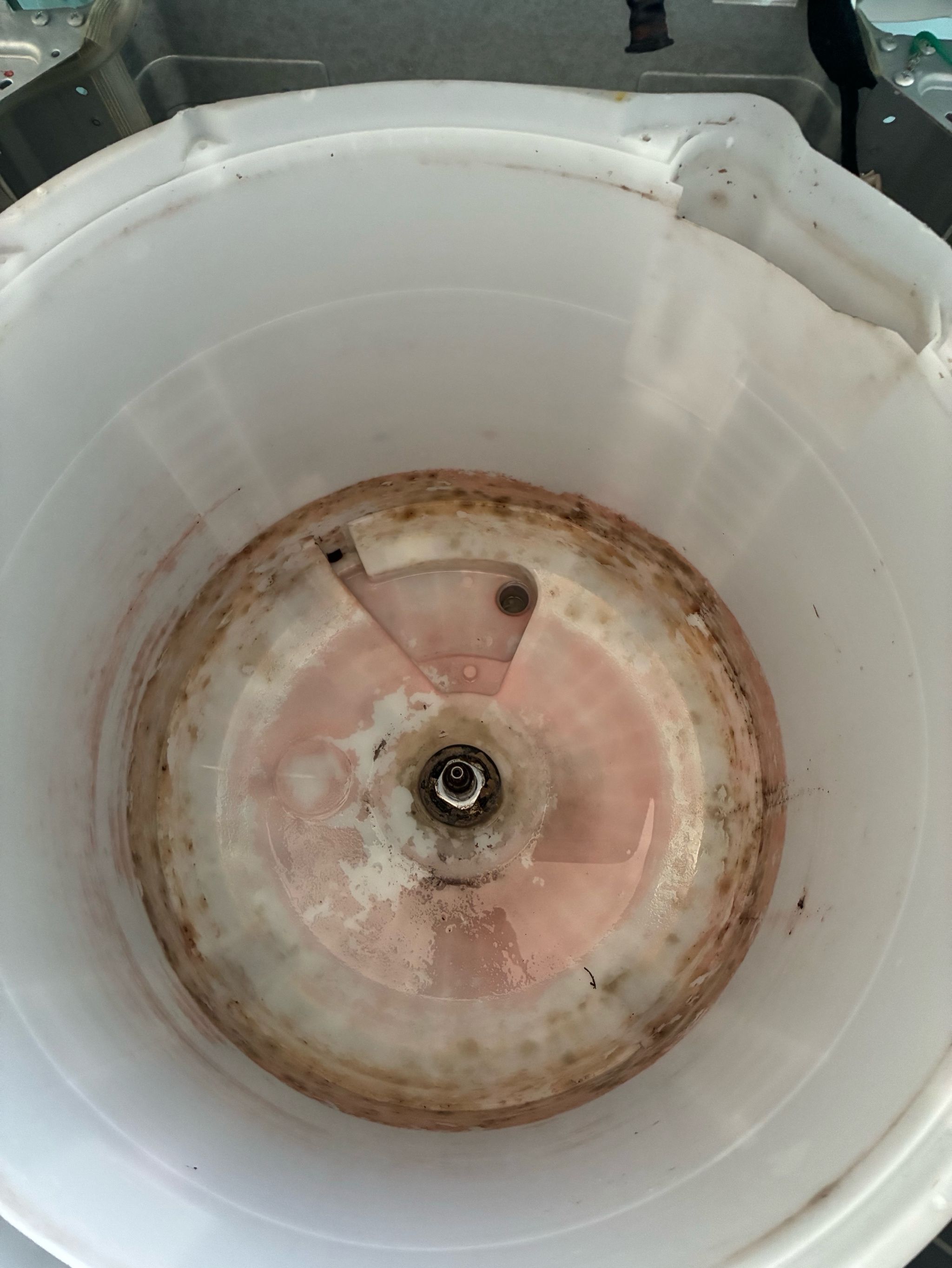 ※洗濯機側の差し込みを抜いて吸水側から残水を出し切る