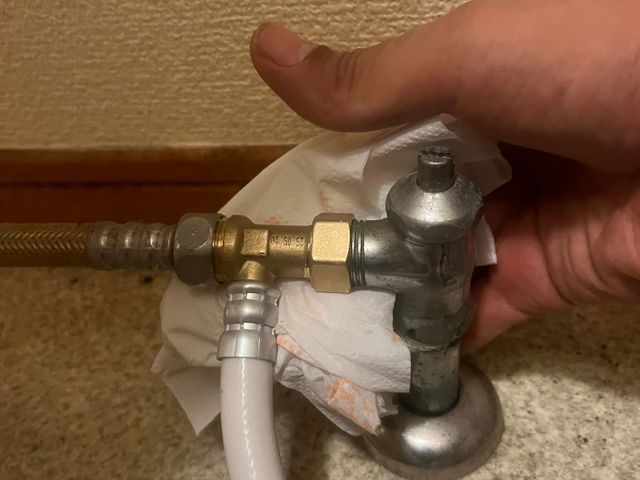洗濯機ホースの劣化で水漏れ…急遽駆けつけました! 以前、洗濯機の取付に伺ったお客様から 「ホースの付け根が割れて水漏れしてしま...