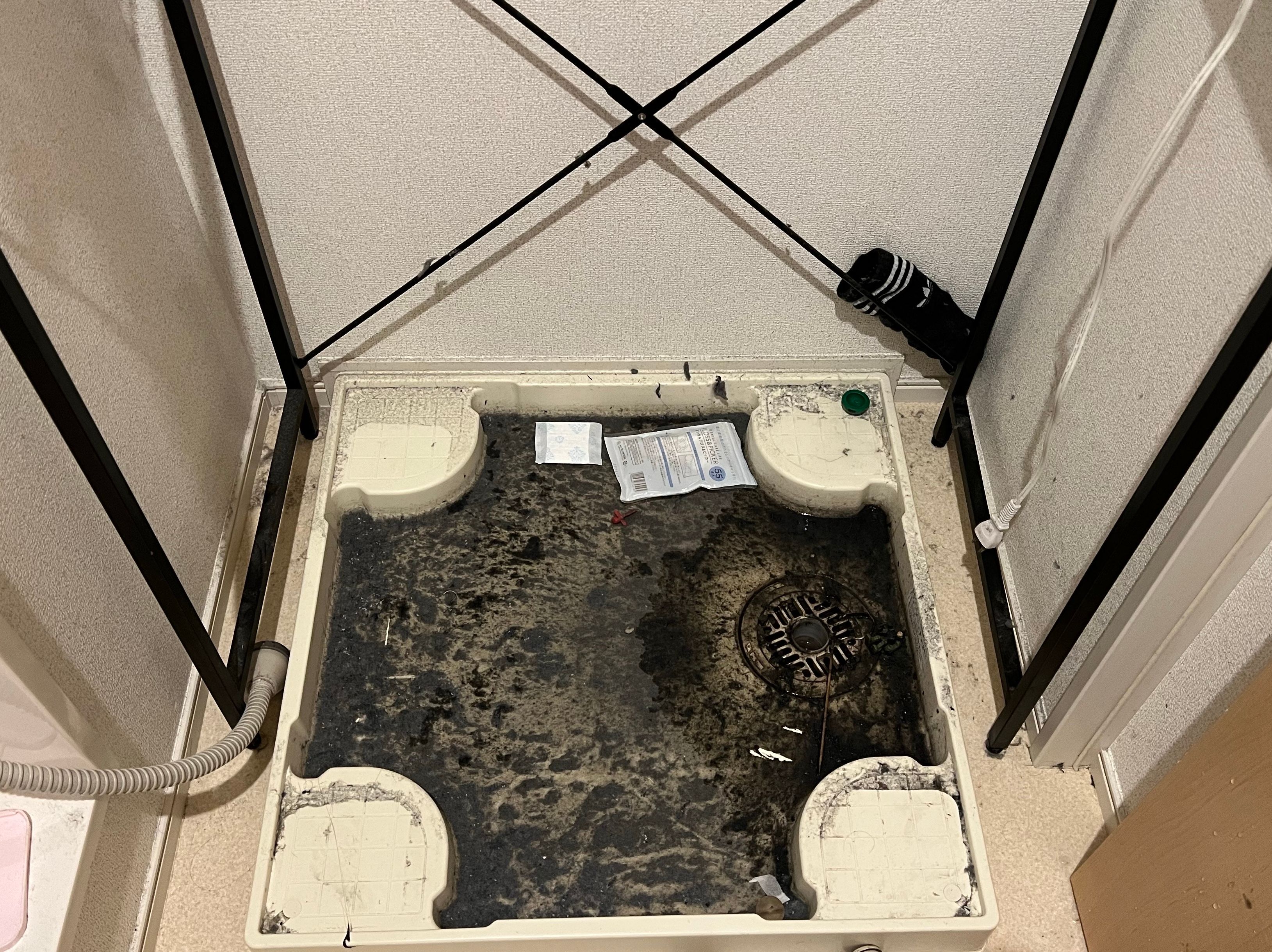 洗濯機の下から水漏れがあり床まで水浸しになってしまったそうです。